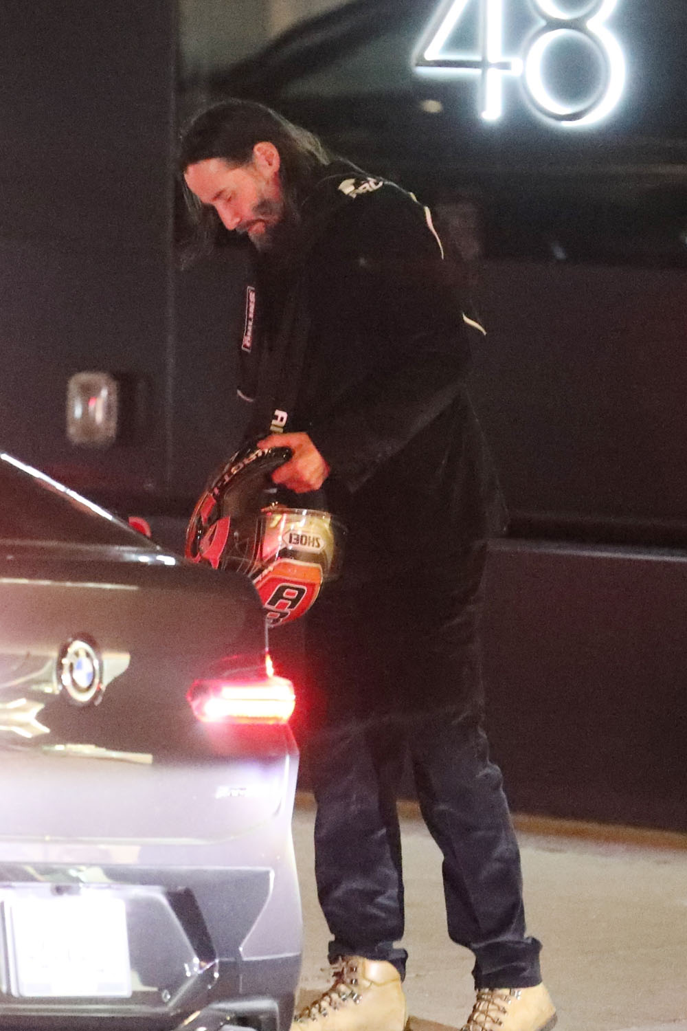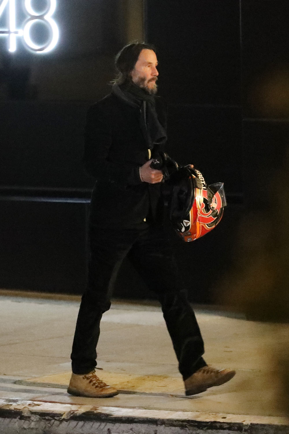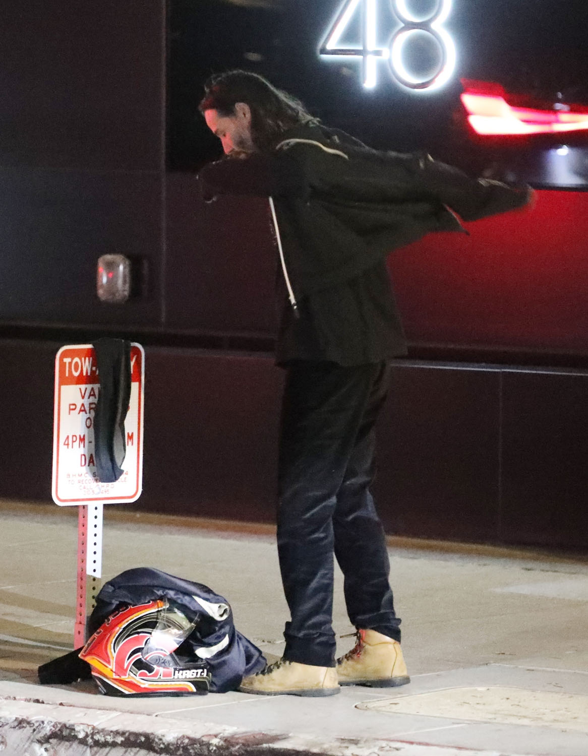 My favourite part of these photos is that after dinner, as he’s preparing to ride home, he’s just getting on all his gear on the street, with his belongings on the ground. I’m not a superstar, nowhere close to one, and even I would be like… um… someone find me a very nice washroom so I can change! This is why he’s Keanu and we love him so much, especially on a day I hate so much.