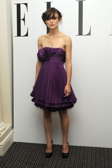 This is Keira Knightley yesterday in London at The Edge of Love afterparty in a gorgeous purple dress looking as healthy as ever. At least in her mind. Remember – she doesn’t have a problem, she’s never had a problem, and you’re not allowed to say she has a problem. Because there is no problem.