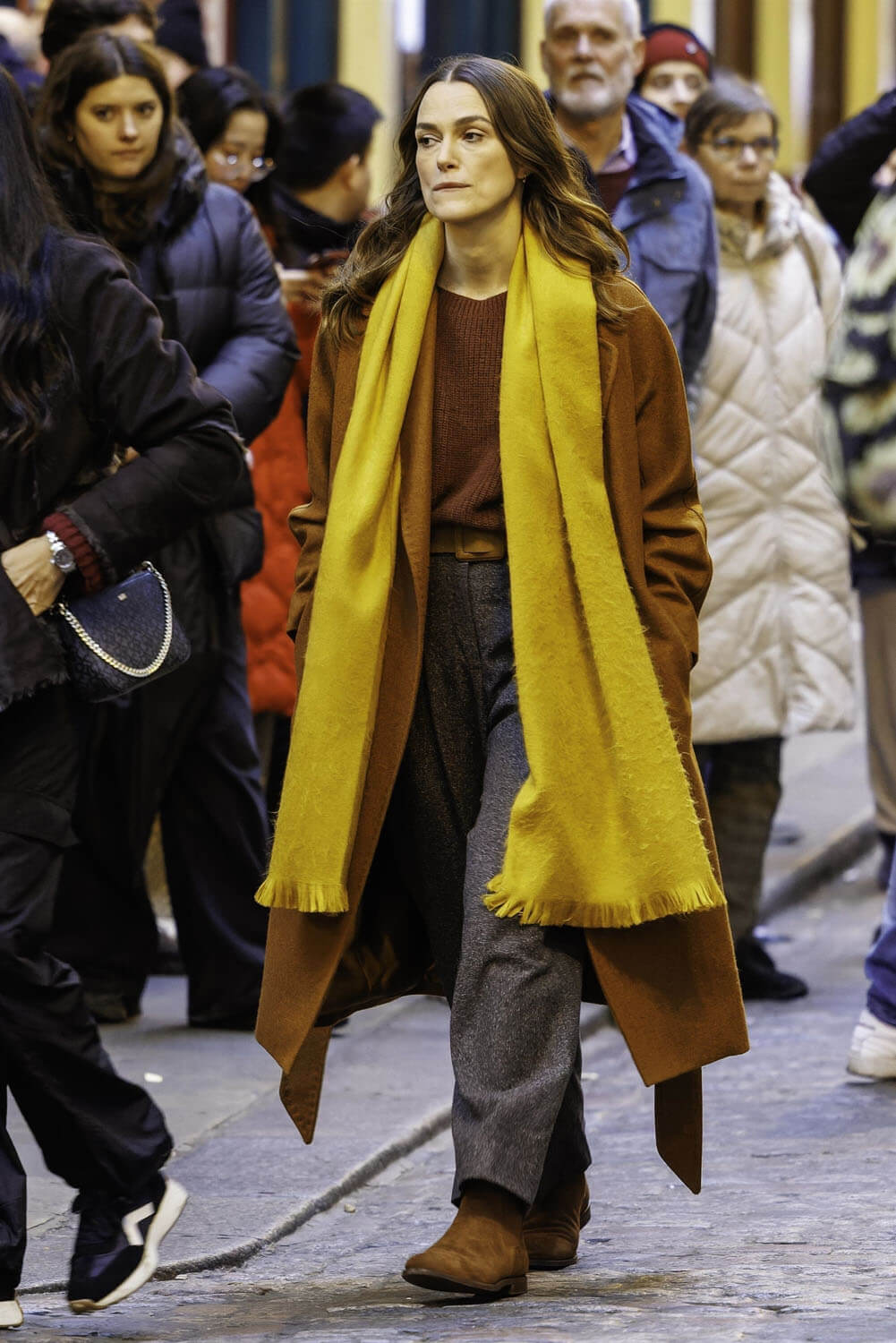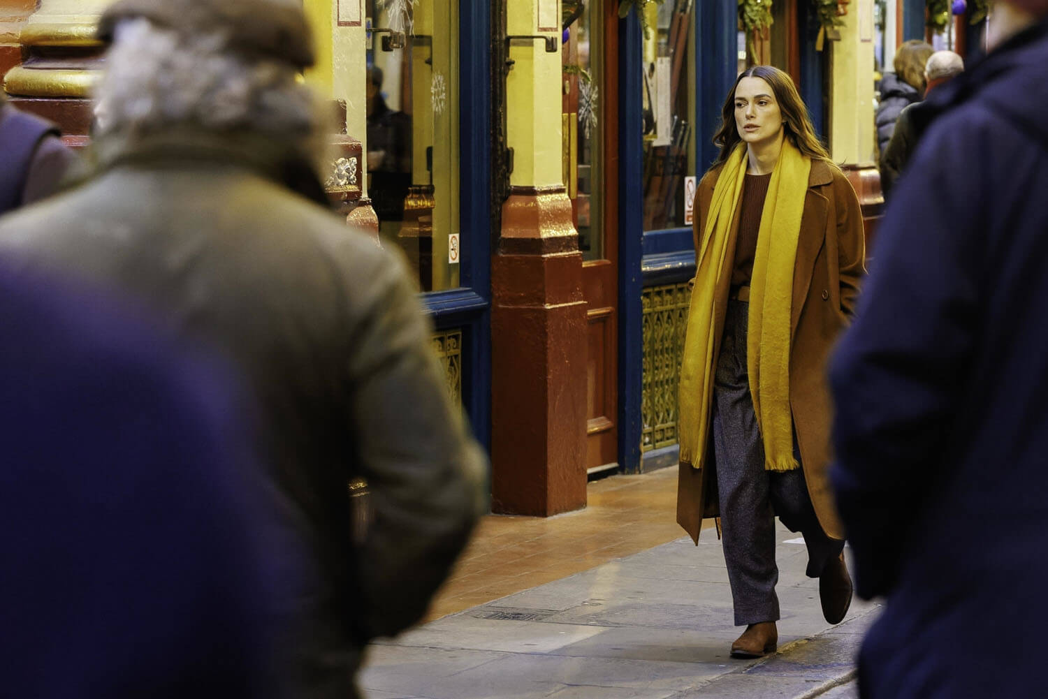 Keira was seen on the set of Black Doves in London. It takes place during Christmas and when you think Keira + Christmas, your mind might go Love Actually. This, of course, is not what Keira’s doing. For starters, Black Dove is a Netflix series, six episodes. It’s definitely her first Netflix series and, I believe, her first television series in the streaming age; she started her career with television parts in the UK but we know her primarily in film. As we have seen, however, increasingly over the last 15 years or so, there’s really no distinction anymore and, arguably, series is where character work can actually be more developed.