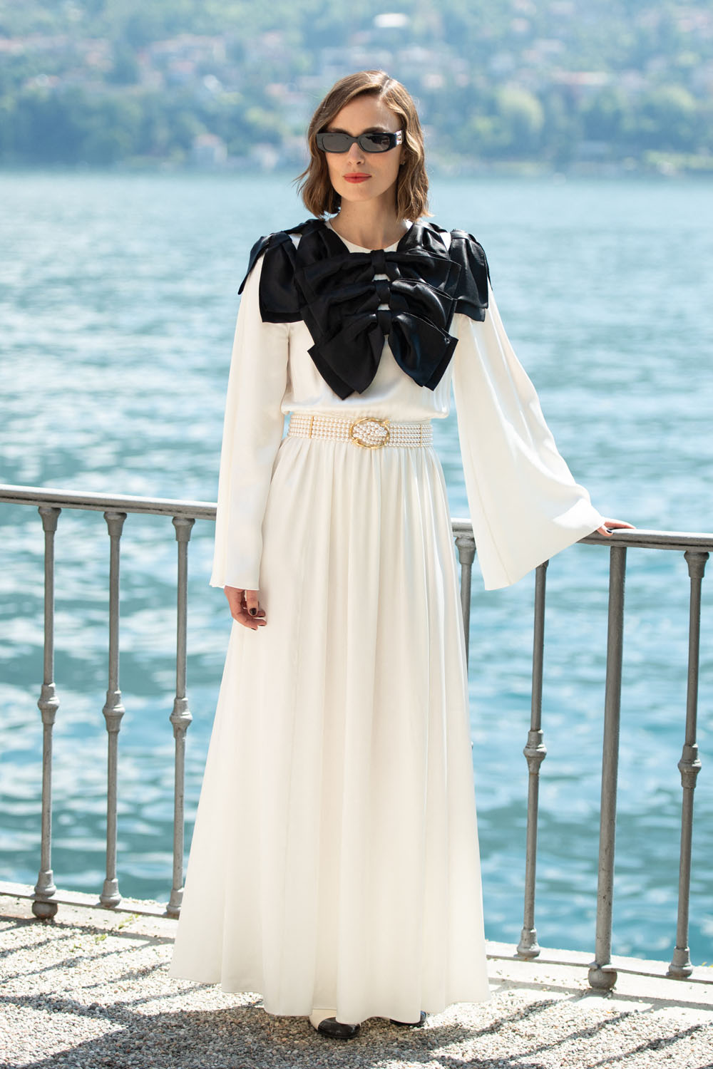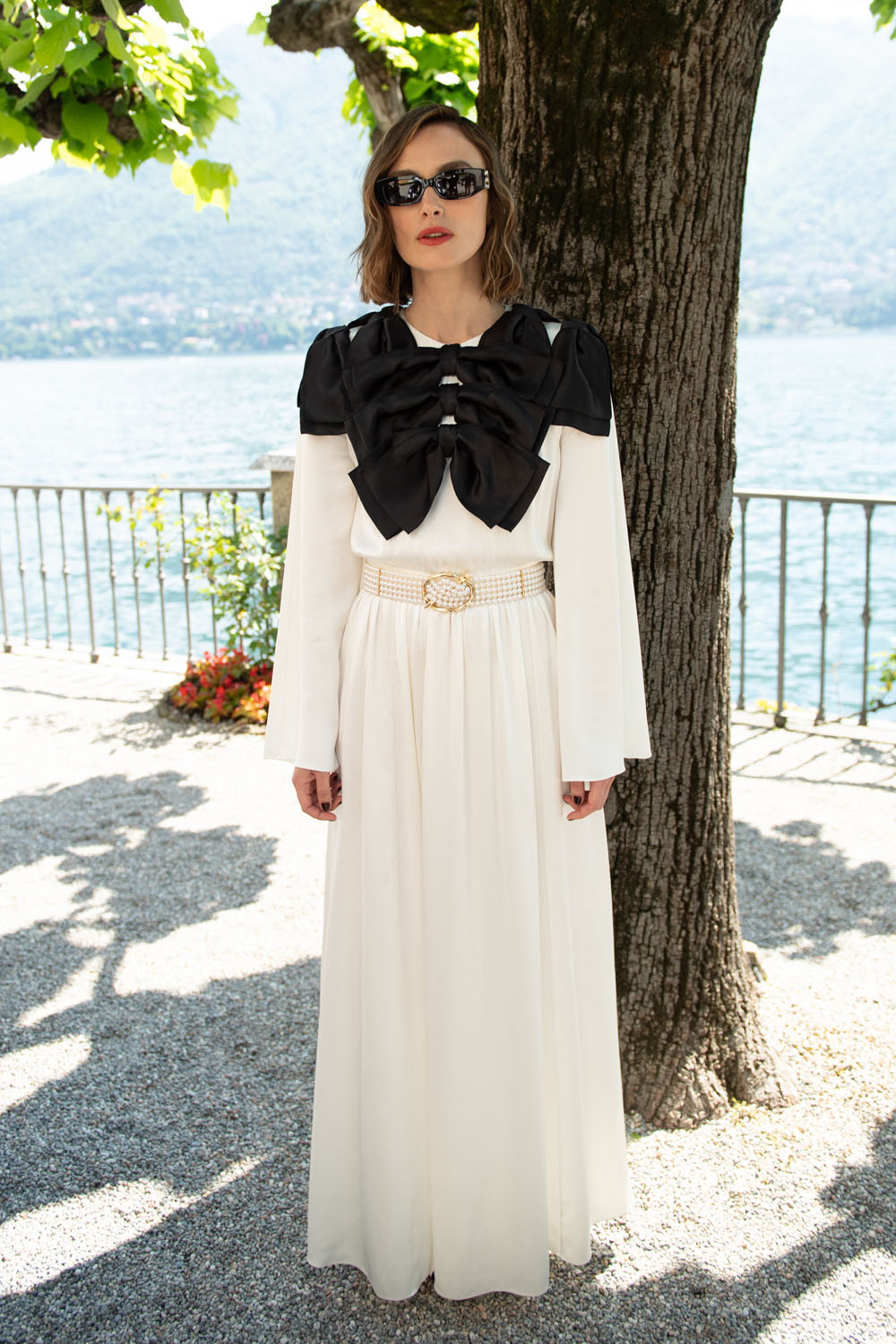 Keira and her husband James Righton were in Lake Como, Italy today for the Chanel Cruise presentation and this look, for me, is the perfect merger of star and fashion house. The giant black bow is pure Chanel and actually a bib – I’m obsessed! The shape of the dress is basically Princess Leia Star Wars, which is fitting because Keira is actually part of the Star Wars Universe. I love it on her, and I wouldn’t love it on just anyone, but on her, it’s just SO good.