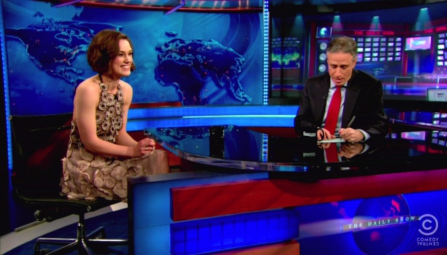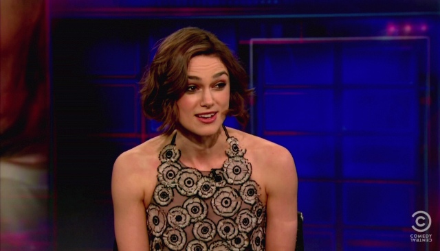 Keira Knightley is in New York promoting Last Night. She visited The Daily Show with Jon Stewart and they apparently talked about the Royal Wedding. I have Stewart PVRd on the regular. Now I can’t wait to go home and watch. You know it’s bad when you even want to hear about the Royal Wedding from other people talking about it.