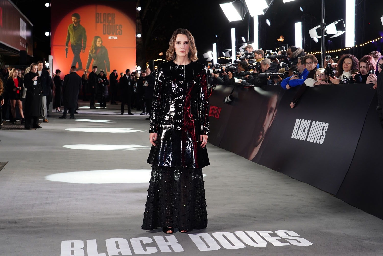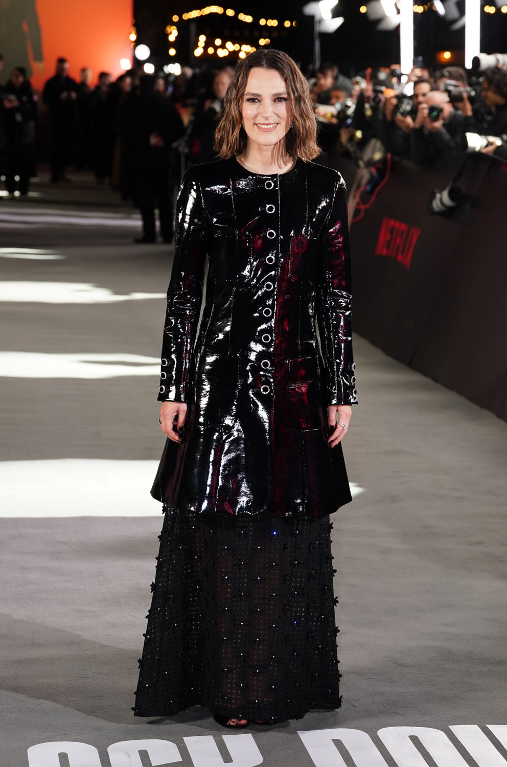 Anyway, Keira was at the premiere of her new spy series, Black Doves, in London last night, and she showed up in matronly Matrix cosplay. Her fashion has always been quirky, I either love or hate what she’s wearing, and this is, well, not a “love”.