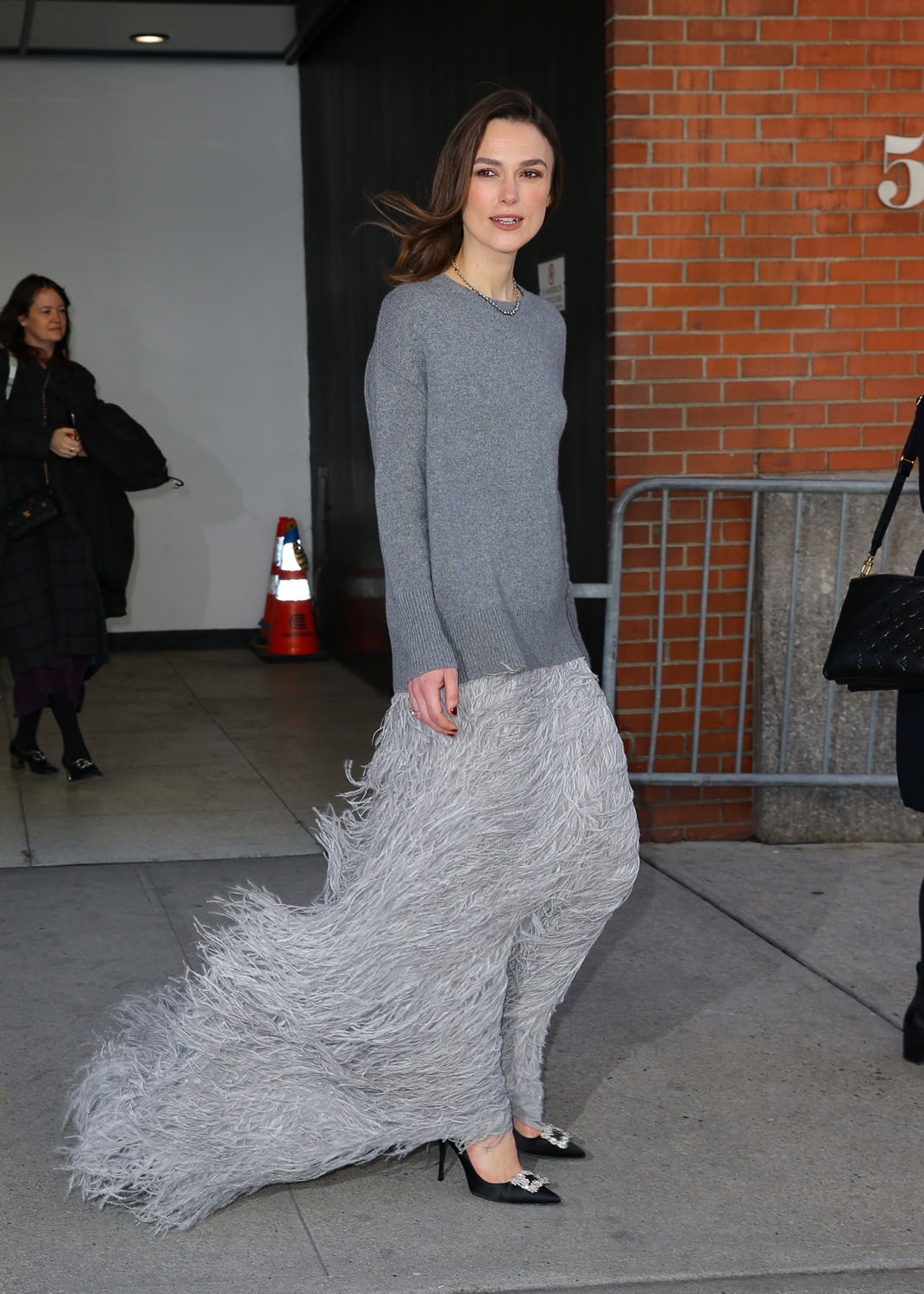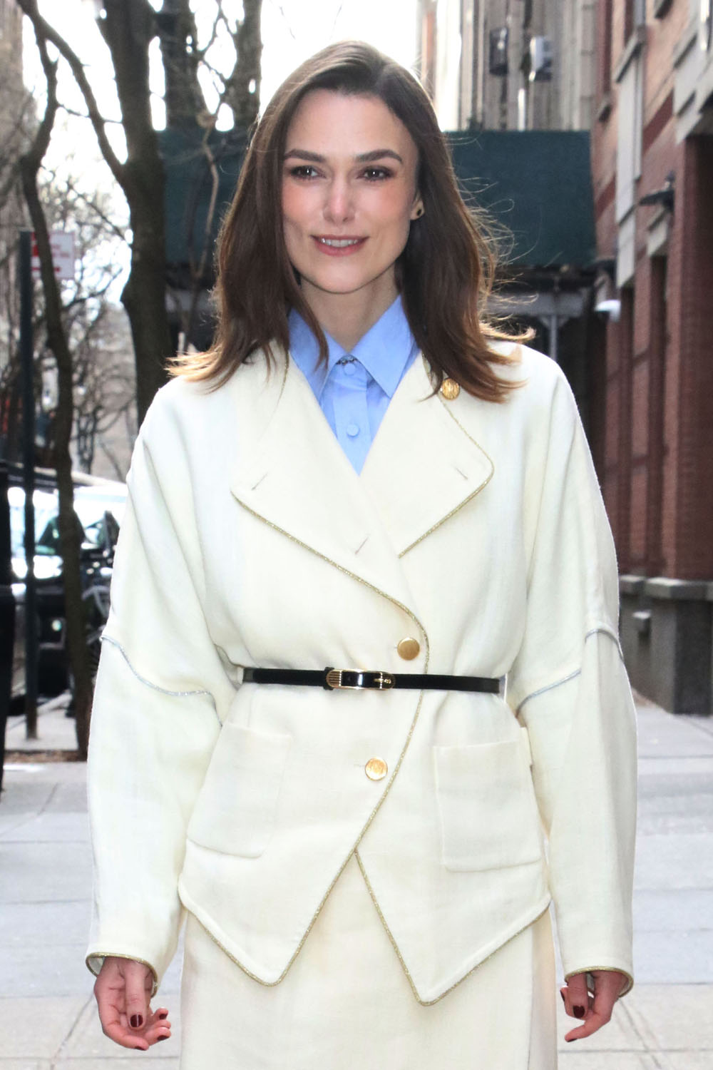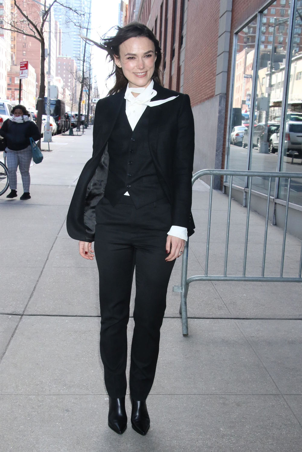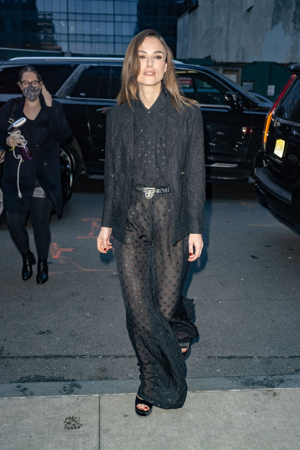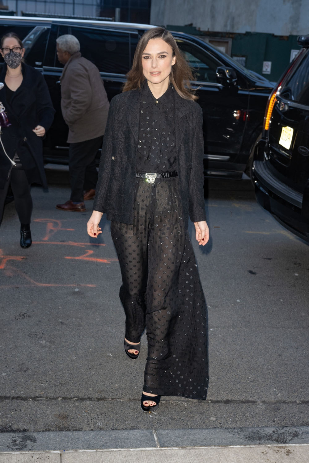 Also, it’s great to see Keira out on the press circuit. Because she keeps a much lower profile these days than she did in the earlier part of her career. Married now, two children, stays away from the scene, and dips back in to amplify the work – and always with great fashion. We’ve had multiple great outfits from Keira this week, starting with the premiere. This is just a classic Keira Knightley look. Vivienne Westwood corset top and skirt, it’s giving period piece and gothic, fitting with all the period pieces she’s been in. And the Chanel shoes are gorgeous.