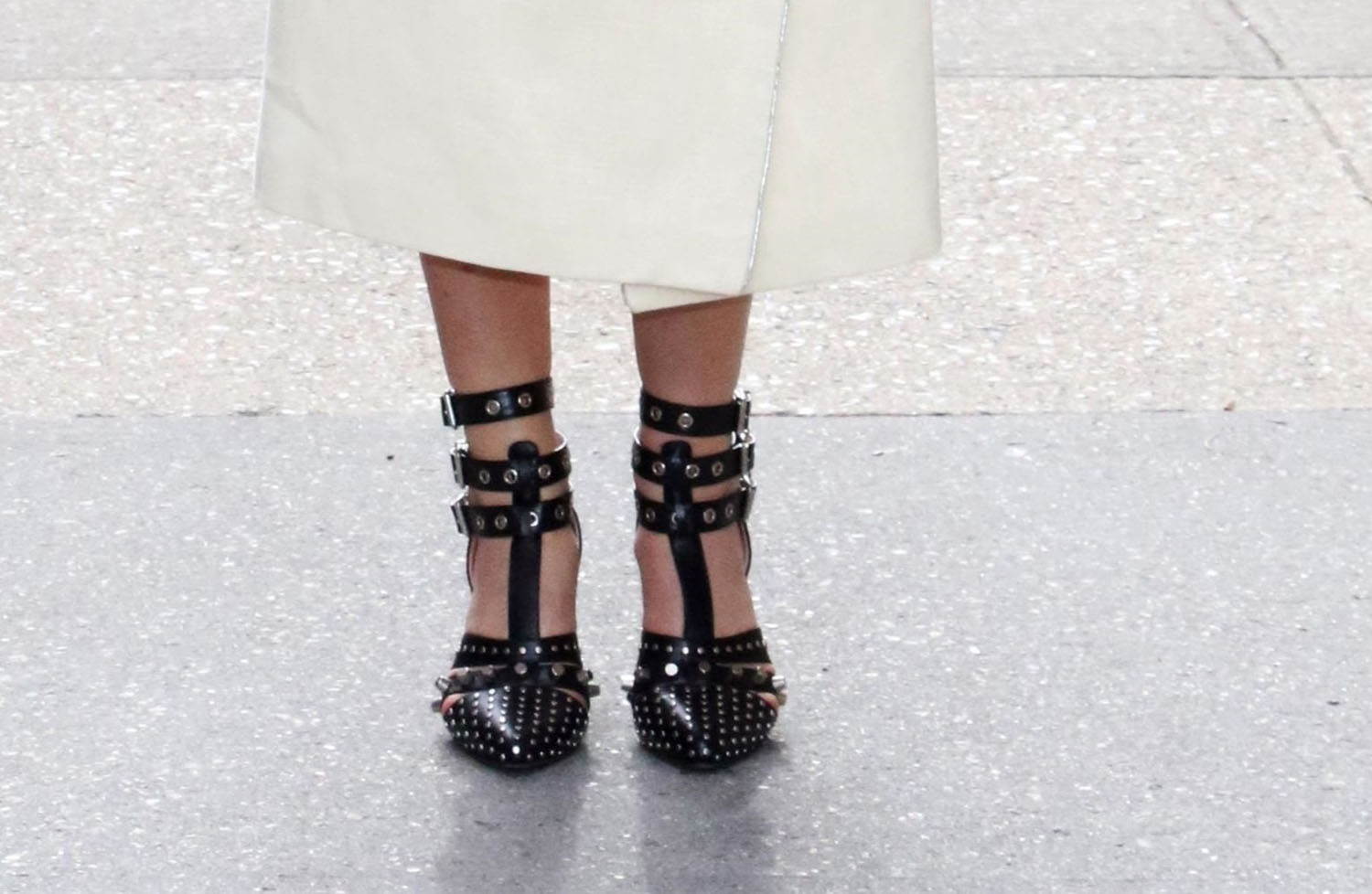 And finally, I think, unless she pulls out more today, another banger – gold dress, big sleeves, mid-length, and the perfect shoe choice. What a parade. Great job by her stylist Leith Clark.