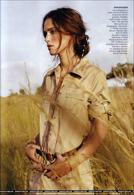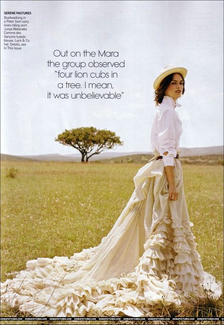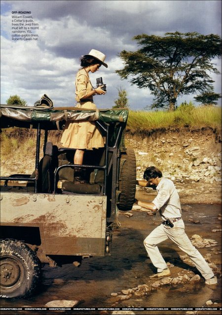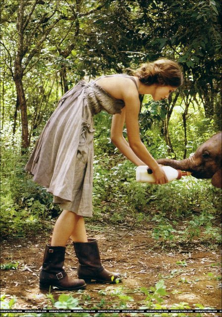 I love the one with the huge skirt blowing in the wind beside her and the motorcycles boots feeding the baby elephant and also Keira in the reeds with in safari fashion looking away…