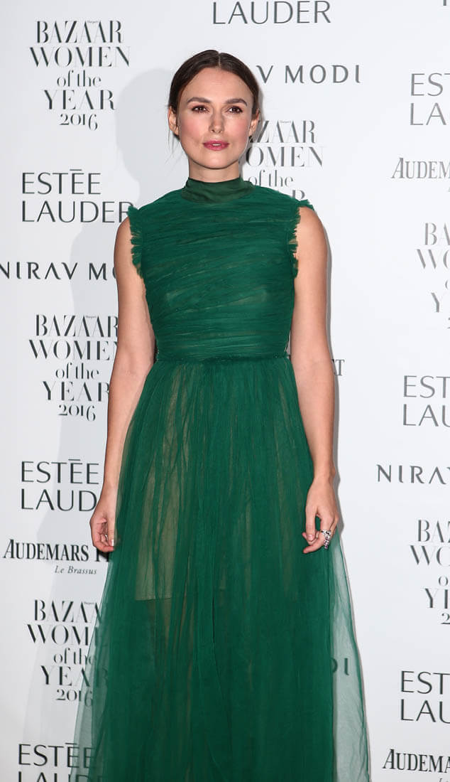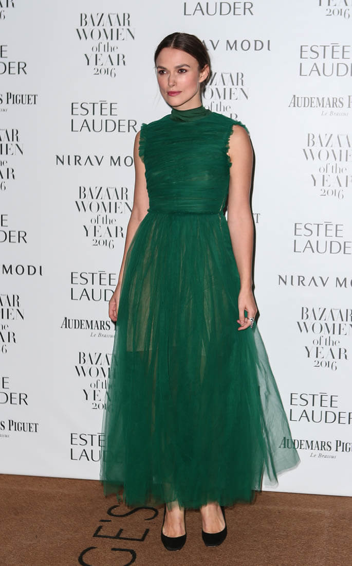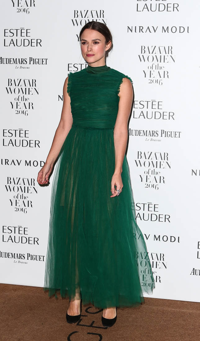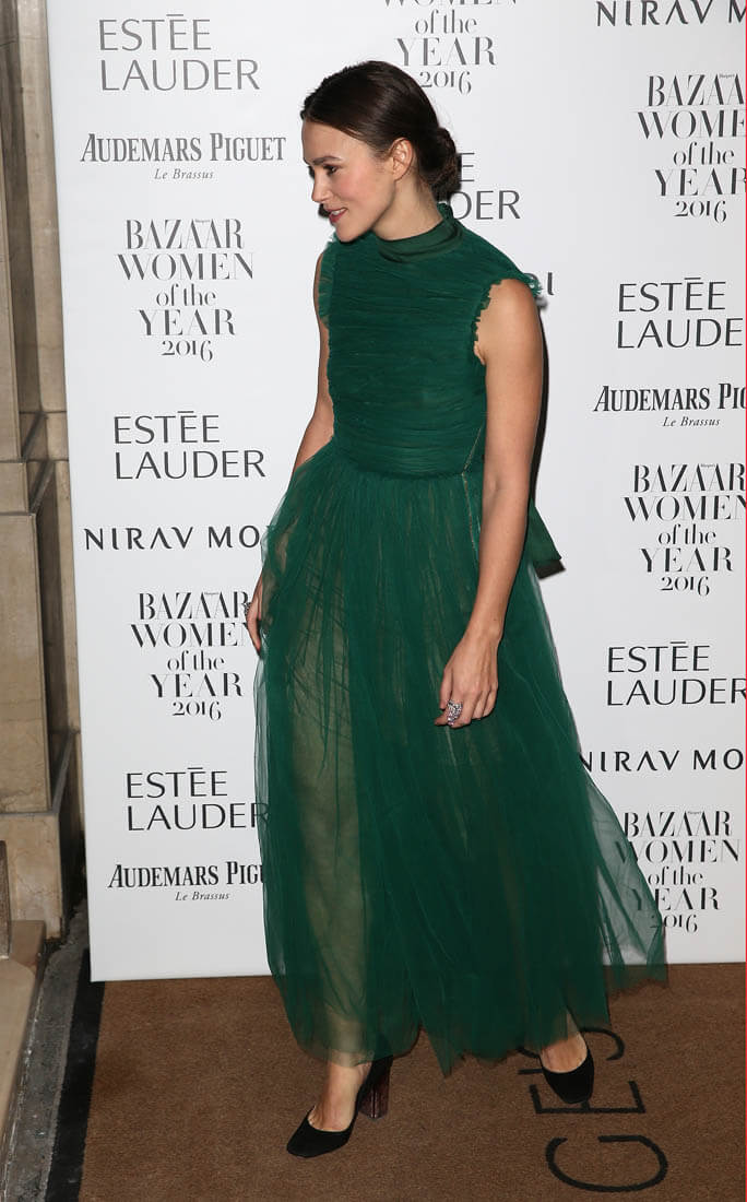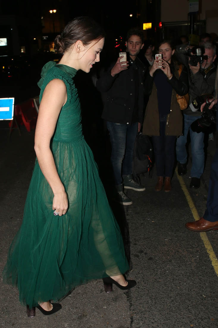 Sad to say I don’t like this dress, not at all. And I like so much of what Keira Knightley wears. But the tulle looks weird around the neck and the chest. And, UGH, it’s sheer on purpose so you can see the shorter beige slip underneath and the black pumps are doing nothing for any of the colours.