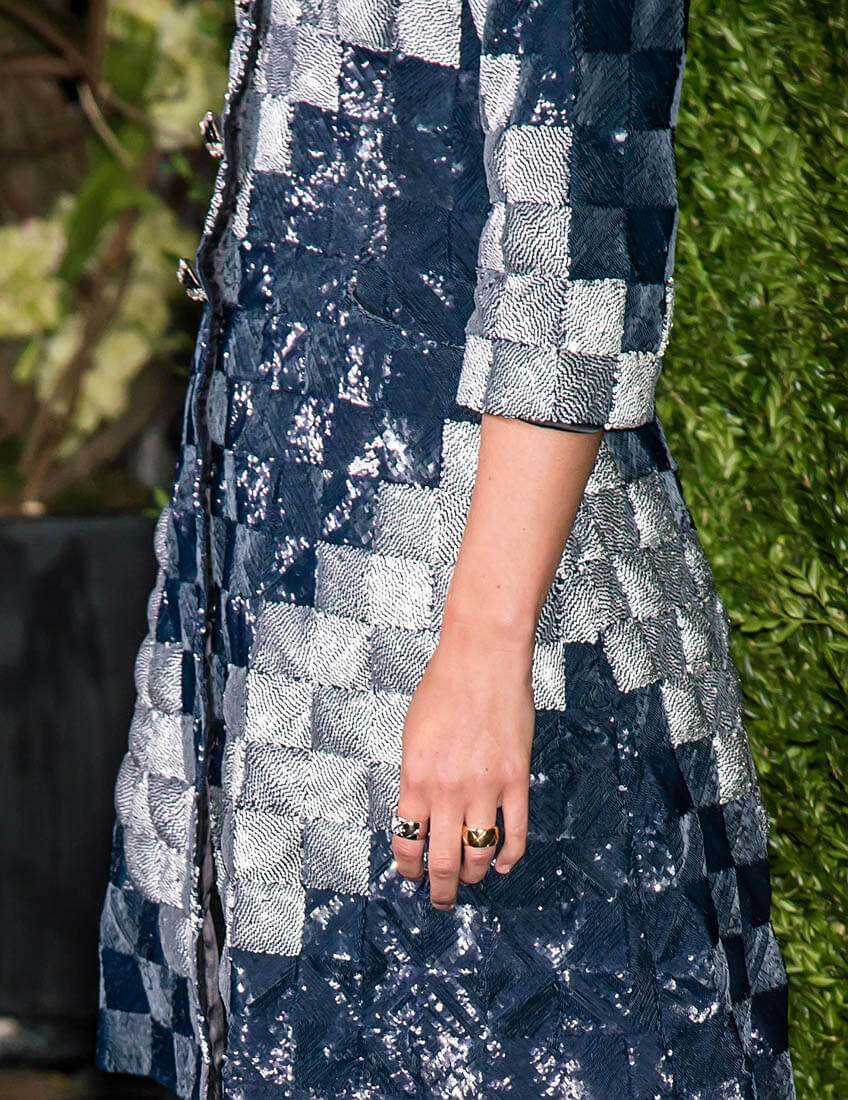If you look too long the squares start buzzing, like an old timey video game. Funky, non? And it’s great as a jacket dress too. I don’t know why she went with those shoes though. Those straps are bothering me. There’s too many of them. And it’s not a good clash.