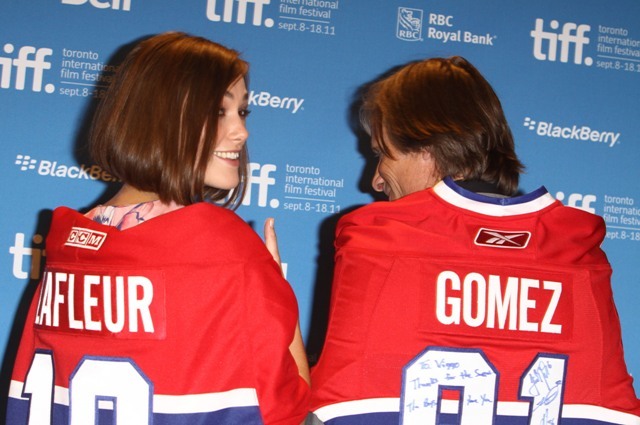 At the press conference, she and Viggo Mortensen posed in Habs jerseys. Cute, right?