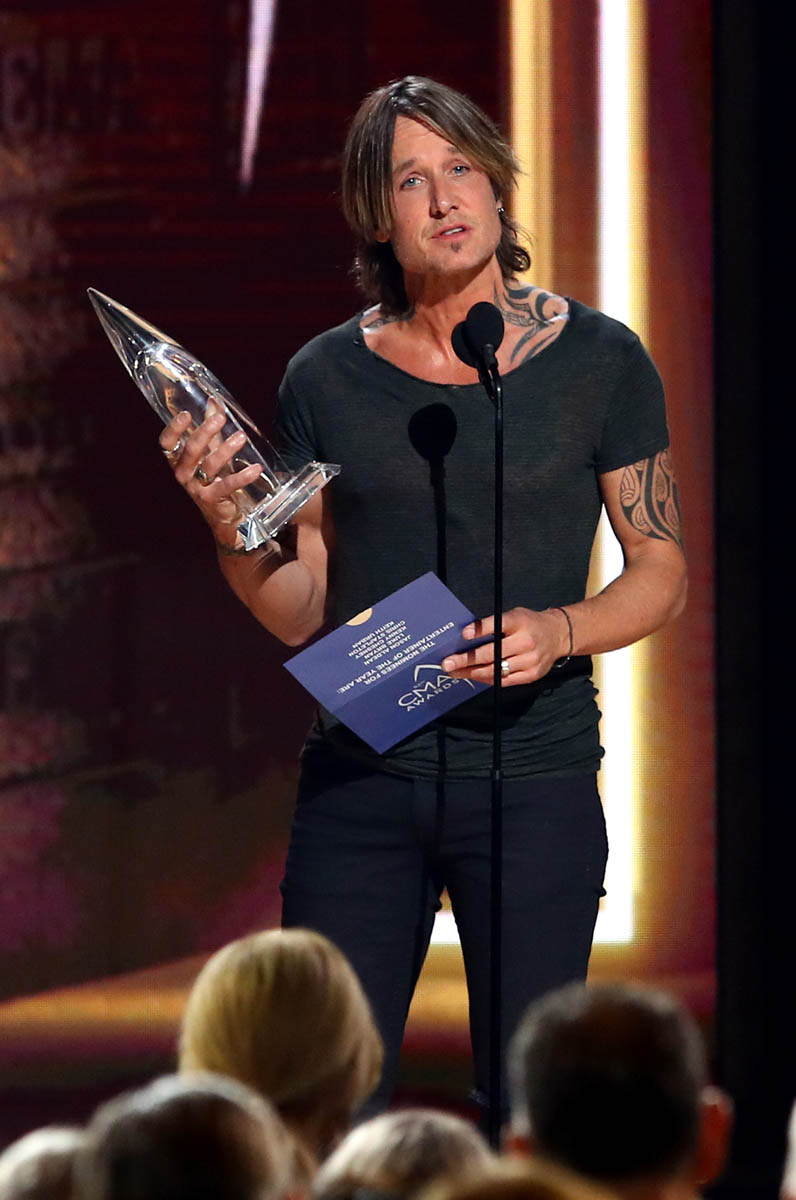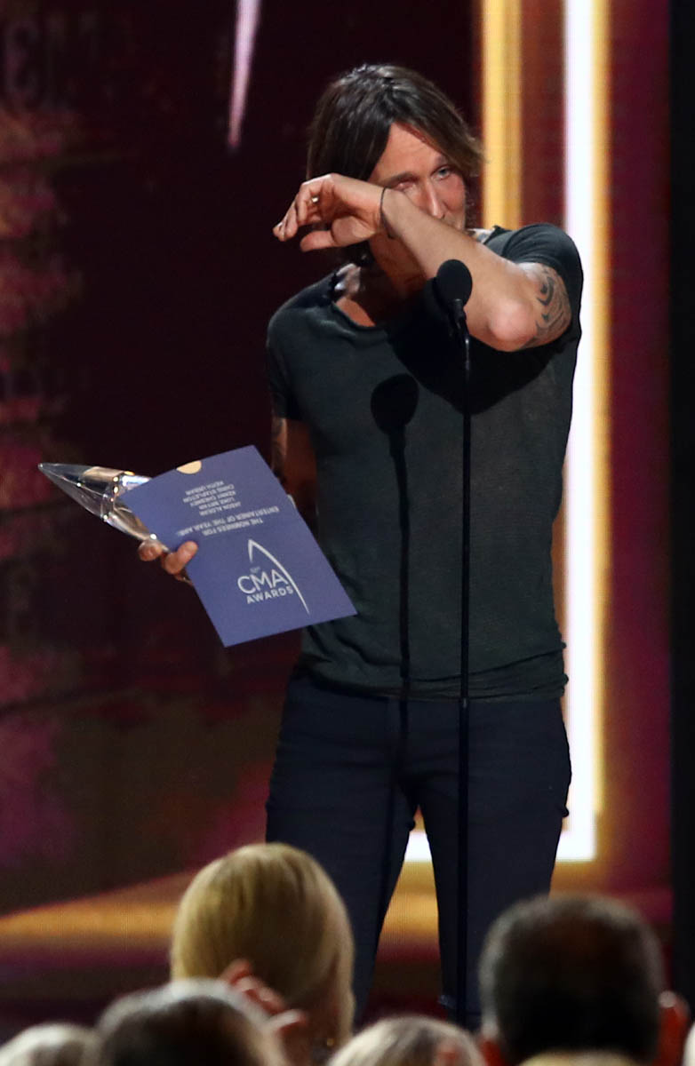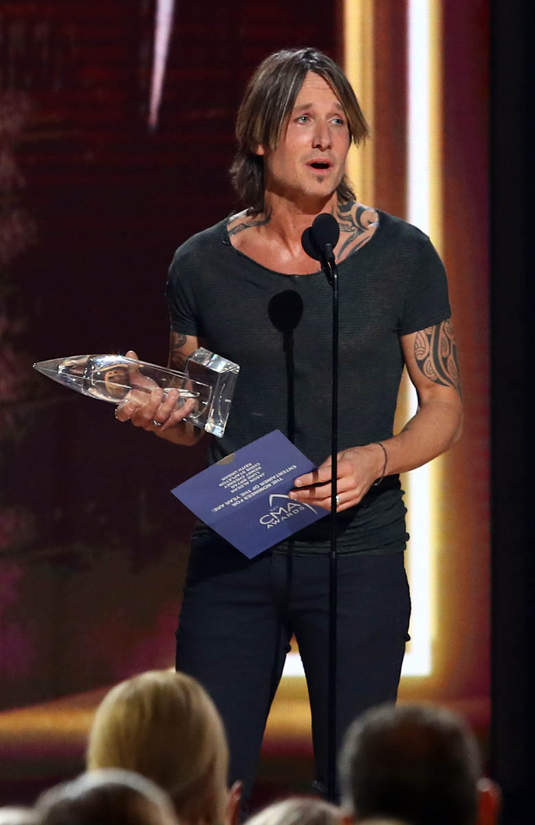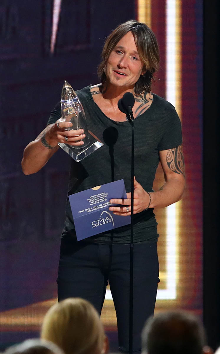 Keith Urban won Entertainer of The Year at the CMA Awards. He was shocked, and not in a Taylor Swift Surprised Face way. He was genuinely surprised and so was everyone around him, including his “baby girl” Nicole Kidman.