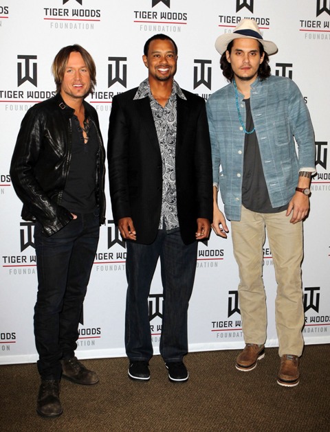 How do you look less douchey? Stand next to someone super-douchey. Like, I don’t mind Keith Urban’s hair so much when Tiger Woods’s shirt and John Mayer’s hat get in the way.