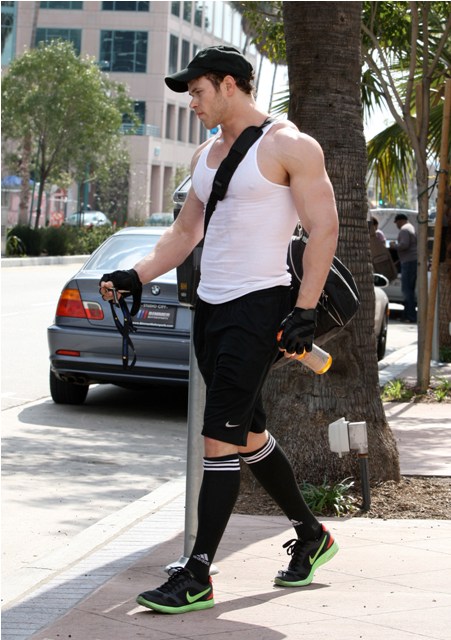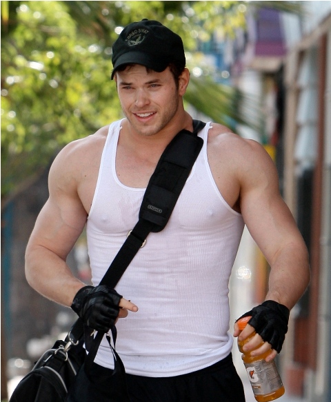Oh look. It's Kellan Lutz leaving the gym after juicing up his muscles. Which, frankly, are gross. You think Cameron Diaz is gross? THIS is gross.