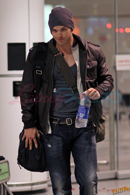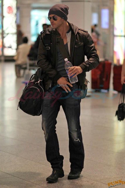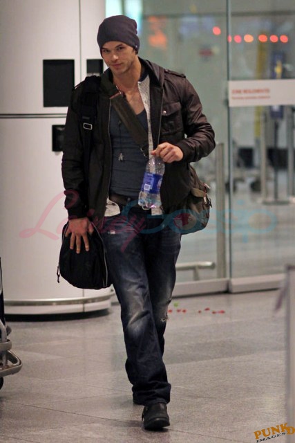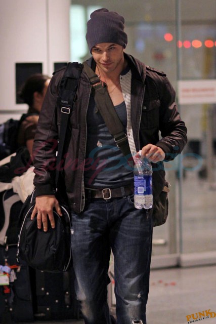 These Twilight kids, they all think they’re huge. Kellan Lutz thinks he’s bigger than them all. Not even divalicious Ashley Greene comes across as self-satisfied as Lutz does these days. Look at Lutz, photographed arriving in Montreal yesterday, smirking his way through the airport. Look at that smirk. That is one self-satisfied smirk. Lutz held out for more money in Breaking Dawn In comparison, Robert Pattinson, the one actually entitled to more money, did not fuss with his Breaking Dawn contract. Did he get a huge raise? Of course. Did he quibble with the producers and the studio for weeks? No. Because Pattinson has the makings of a real star. We can debate his actual talent, or whether or not we think he’s attractive, but the ingredients and opportunities are lining up right for him. Lutz on the other hand…well it’s an uphill climb. He’s one of many vying to separate from the pack. And that face, well, it’s not special. The cheesy catalog smile, the constant practiced posing, it’s a dime a dozen. Whatever Kellan Lutz is selling, I am not buying.