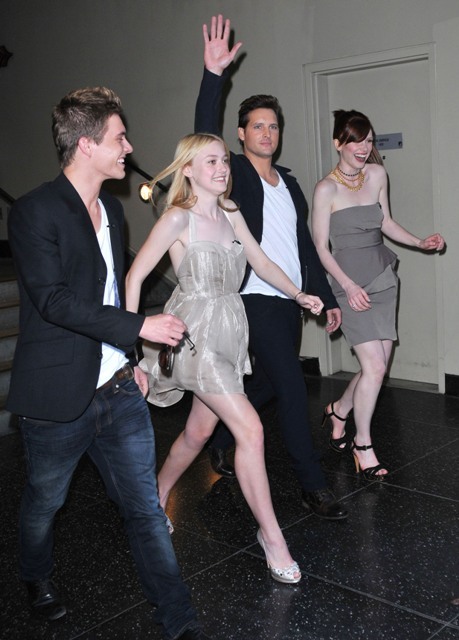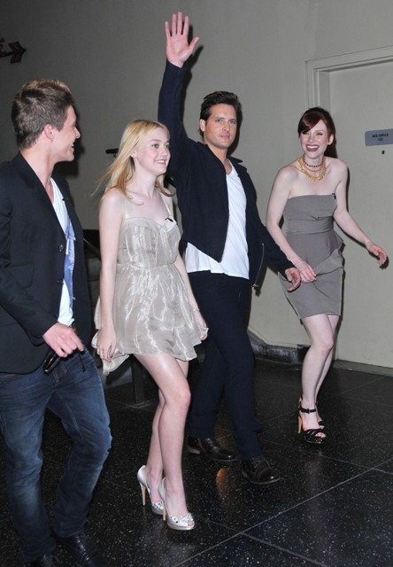 Am loving Kristen Stewart’s dark grey dress, but my favorite is Dakota Fanning’s silver mini. And someone please tell Nikki Reed to stop spray-tanning. She’s like burnt sienna in these photos and it’s frightening me.
