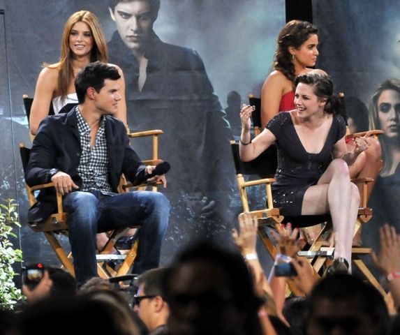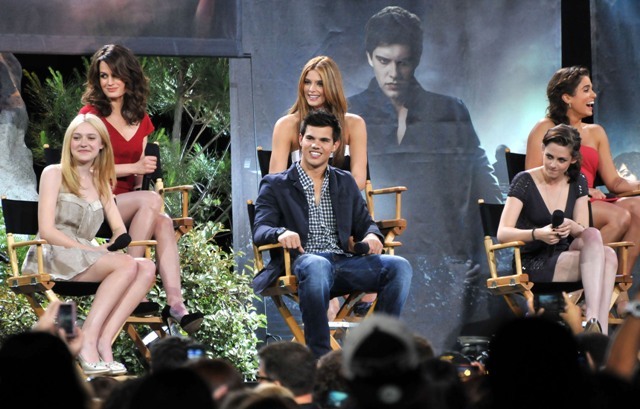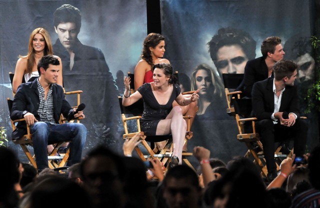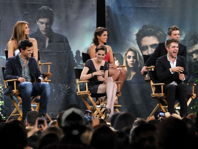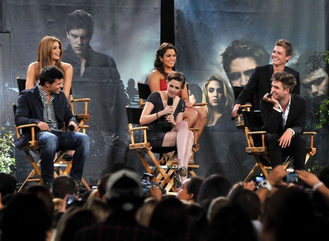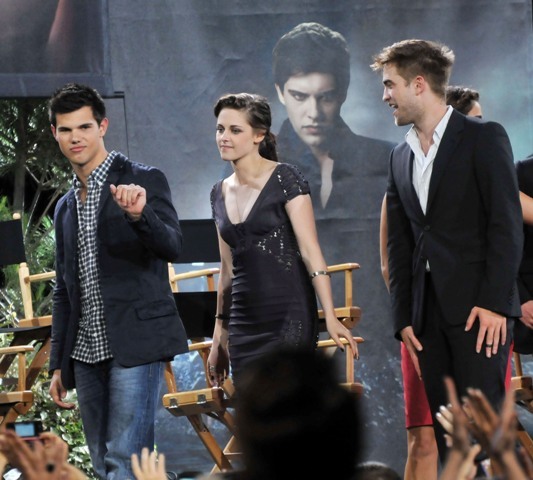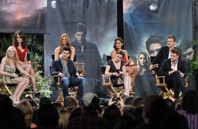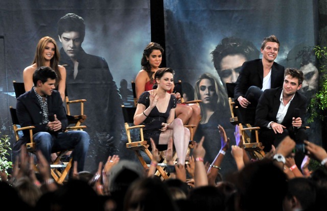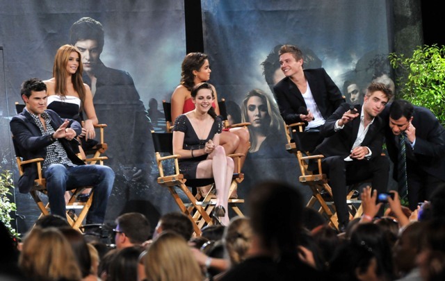 Also included are photos from last night’s Twilight special on Jimmy Kimmel in advance of the release of Eclipse. Everyone was there, except for Kellan of course, because he has to go to work on the epic and anxiously awaited Immortals. Oh wait…no, that’s Pattinson, currently filming the much-anticipated adaptation of Sara Gruen’s Water for Elephants opposite Oscar winners Reese Witherspoon and Christoph Waltz. I see Pattinson in the cast photo, but no Lutz. See what I mean? RPattz can get a night off from his movie, a legitimately massive production with huge expectations in which he is The Star, but Lutz can’t wait one day to arrive in Montreal for a movie that is at best Clash of the Titans: The high school years? I don’t think so. This is straight up posturing.