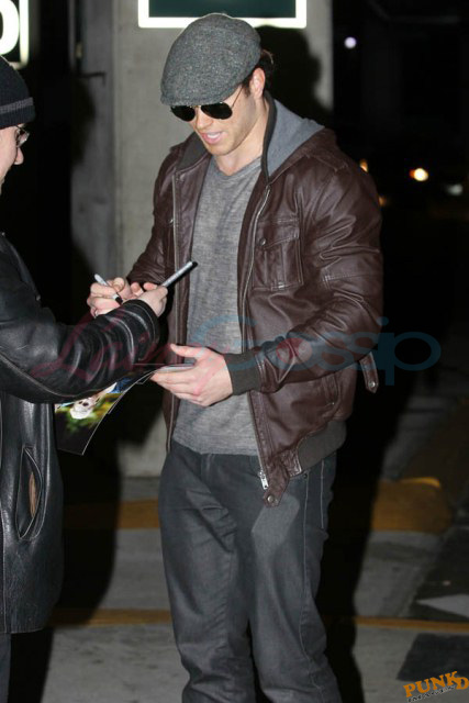 Kellan Lutz arrived in Vancouver last night to get to work on Twilight. Lutz seemed to be in great spirits to be back in Vancouver, even giving one of the photographers a hug after asking for her whereabouts. Well that’s awfully friendly, isn’t it? Especially since last year he and his people were rather accusatory about an incident in Montreal – he claims he was run over by this same pap and feared for his safety, going so far as to file a police report that was eventually dropped because there was no evidence.