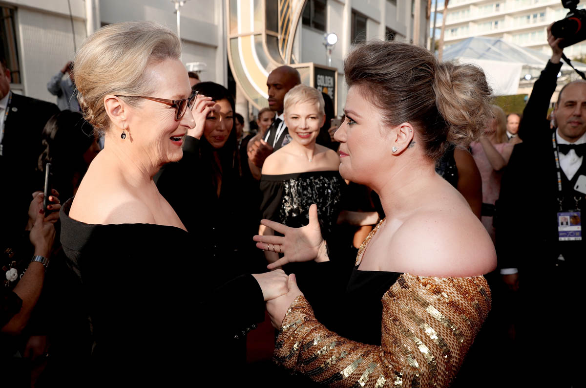 Kelly Clarkson not only got to fangirl over Meryl Streep but she also met Meryl’s date, Ai-Jen Poo, and Tarana Burke, the creator of the #MeToo movement. I love that Ai-Jen and Tarana will forever be a part of this moment because yes, Kelly Clarkson losing her sh-t over Meryl Streep is cute and hilarious but it also puts more eyes on two women everyone should know. Again, these two things can be simultaneous – a fun moment PLUS an opportunity to amplify the voices of two activists. Like Lainey wrote in today’s open, not everything has to be mutually exclusive.