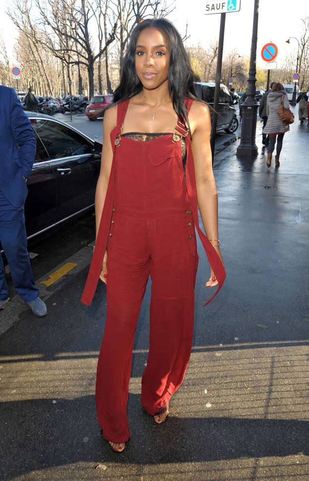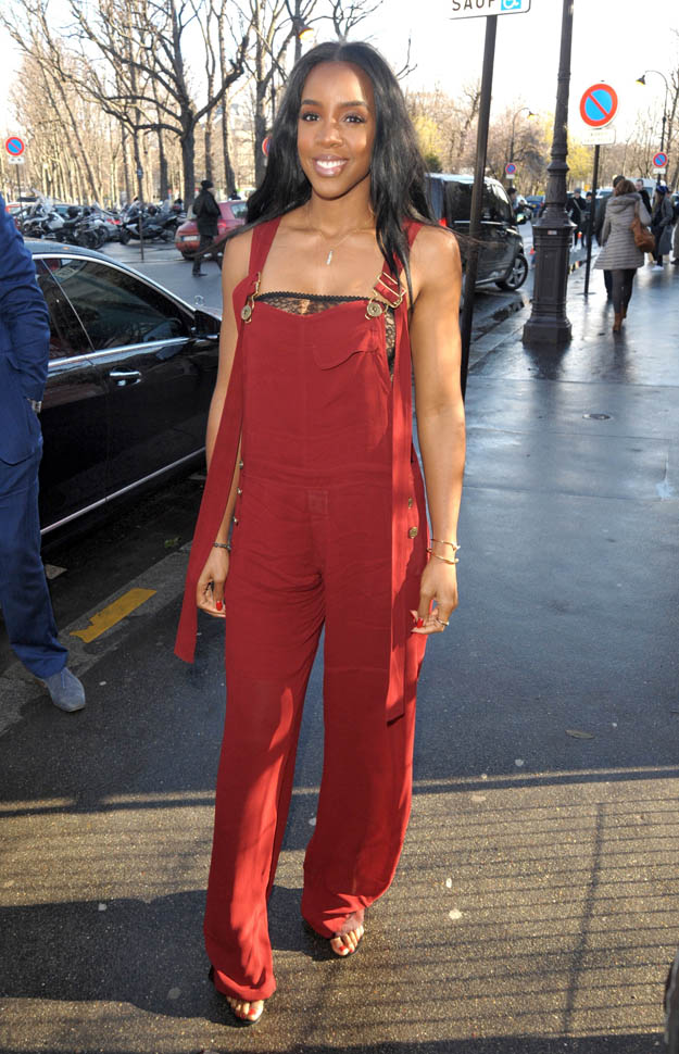 I love this look over a lace bra top. And when I first saw the shots, I was obsessed. The problem is that after a couple of hours of sitting, the material starts to wrinkle. So there are also pictures of her wearing these red overalls that aren’t as sharp as the ones taken at the beginning of the day. Pro tip: pictures early, no pictures later.