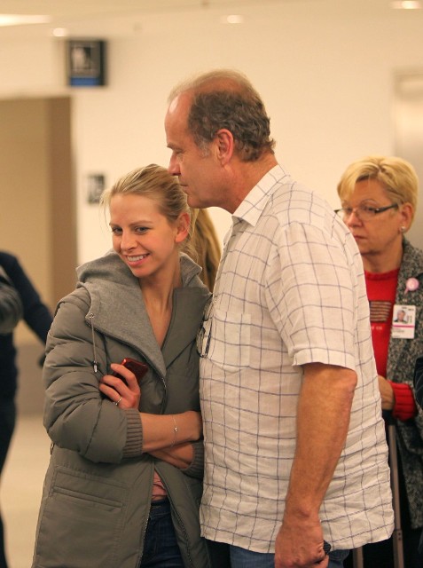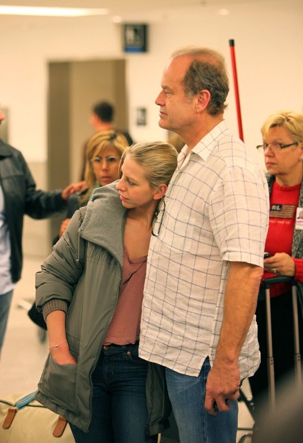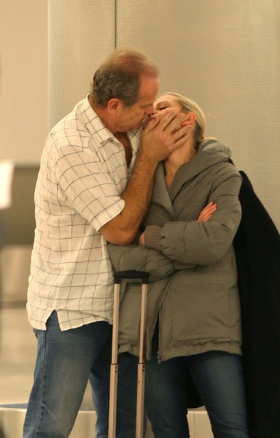 Anyway, Kelsey was at the airport in New York yesterday waiting for his bags with his new piece – they’re apparently getting married soon – and couldn’t help himself to her mouth. I wonder how much she gets paid every time he does that. You would have to pay me. Because, obviously.