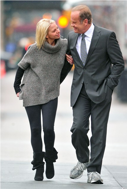 Only the Brange can get away with this kind of PDA. And even if we disagree on everything, I think we can all agree that Kelsey Grammer is not Brad Pitt. But here he is the other day in New York, strolling down the street like it’s a photo shoot, with his brand new 29 year old fiancée Kayte White, like puppy love looks good on a 55 year old embroiled in a public bitter divorce battle.