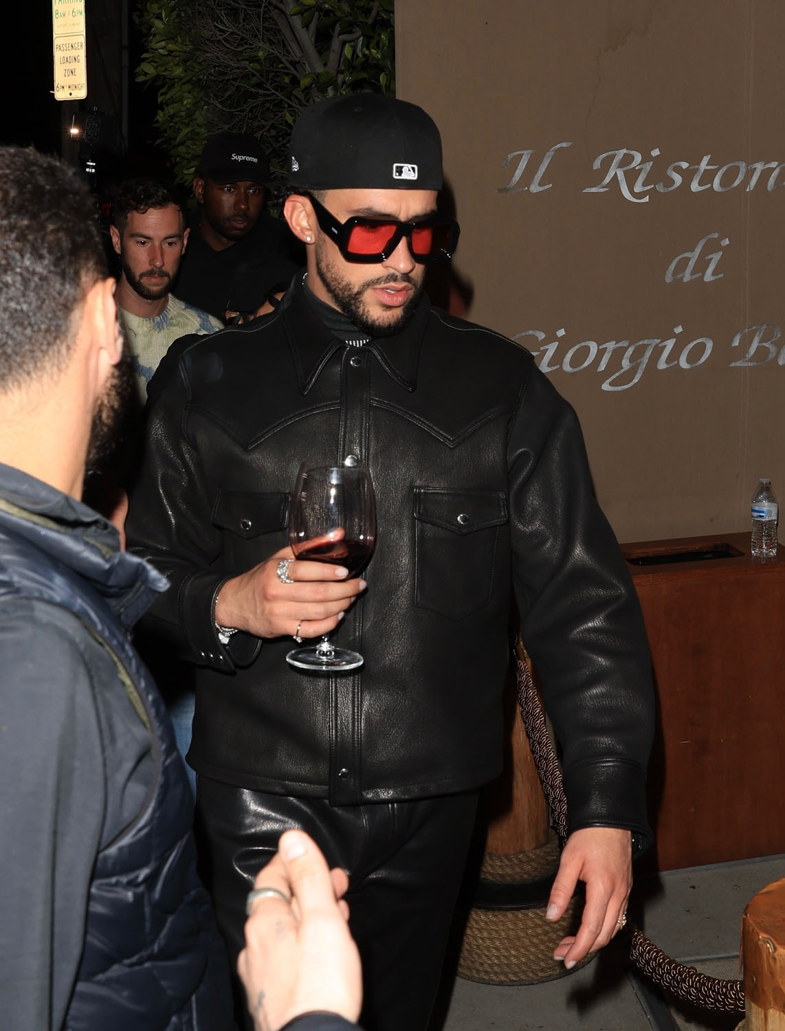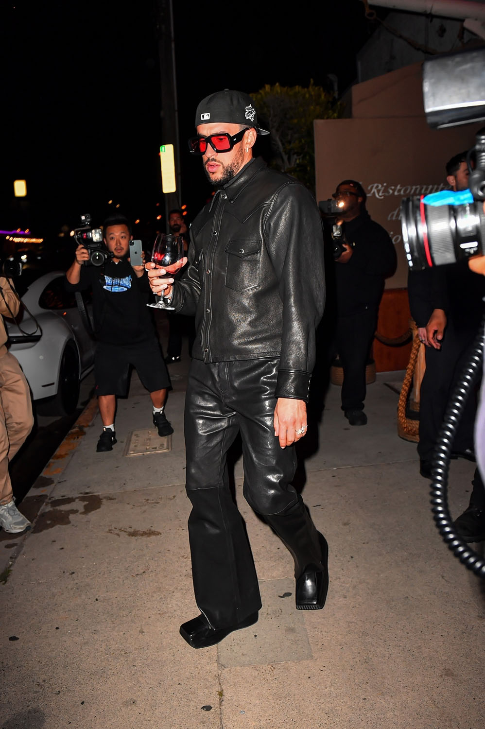 Last night they went out for dinner at Giorgio Baldi and then hit up a bar, both wearing leather fits. Also he’s walking out of there with a drink like Rihanna.