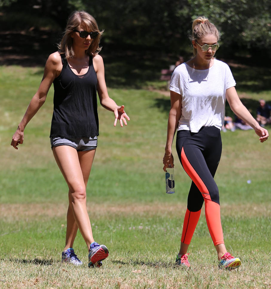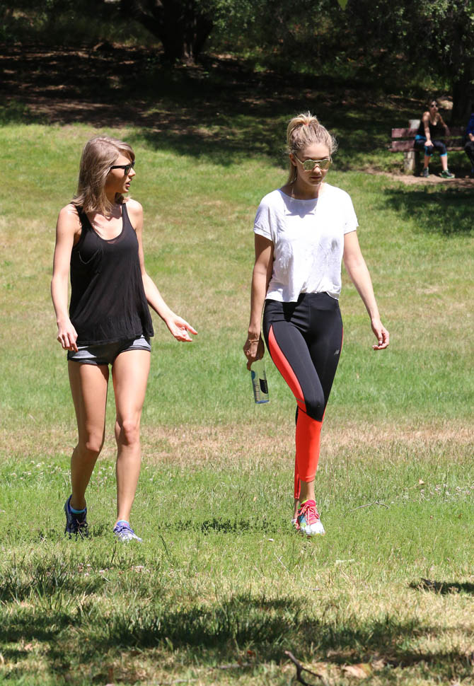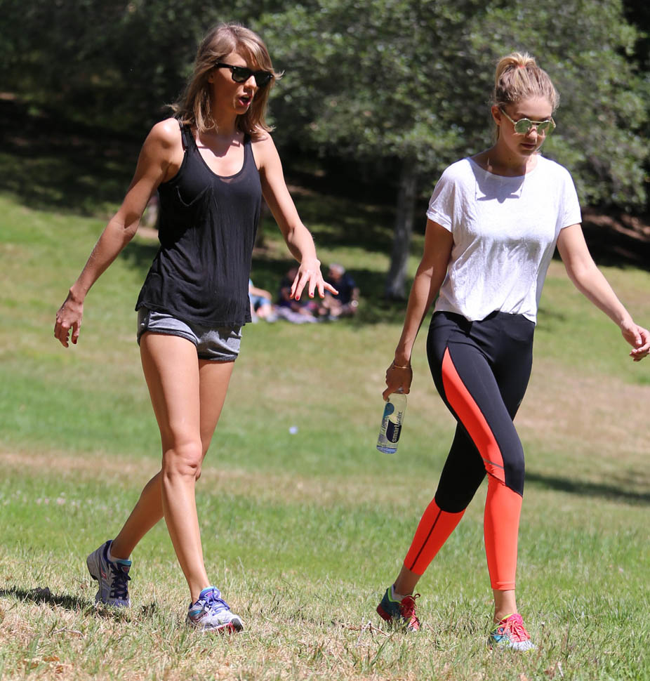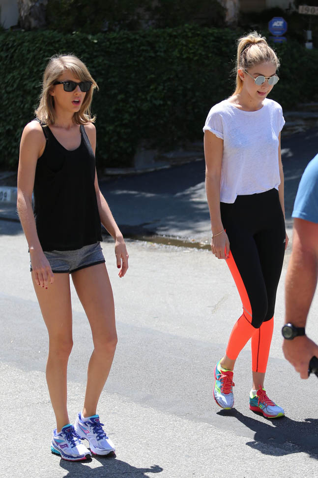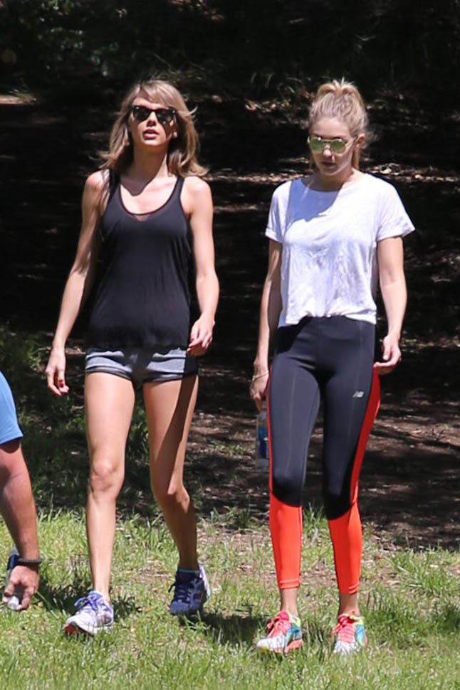 After kicking off the 1989 tour in Tokyo last week, Taylor Swift was back in LA this weekend. On Saturday she was seen at Wango Tango, dancing and cheering during her boyfriend Calvin Harris’s set. Yesterday she was out on a hike with Gigi Hadid. Gigi is one of the many Friends Of Taylor (FOT) featured in the upcoming Bad Blood video that will premiere at the Billboard Music Awards on Sunday.