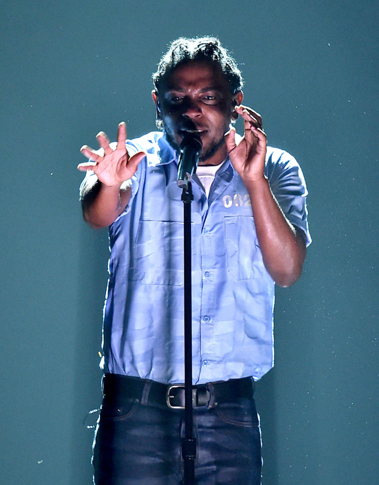Kendrick won 5 Grammys last night: Best Rap Album, Best Rap Performance, Best Rap Song, Best Rap/Sung Collaboration, and Best Video (with Taylor Swift for Bad Blood). For now, that’s where they can keep him, in “rap”, where “he belongs”. For how much longer though? Every time he shows up at the Grammys, this is the question he’s asking through his art: how much longer? Because it’s coming.