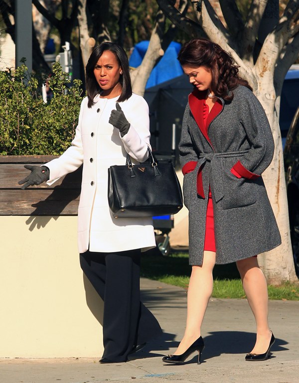 It’s Olivia and Mellie, Kerry Washington and Bellamy Young, shooting scenes for the show before the holiday break. Duana and I went out the other night and spent part of it talking about Scandal. Top 3 Scandal characters, how do you rank them? We decided as follows: