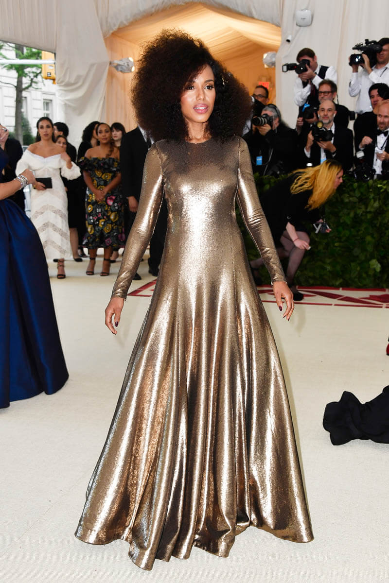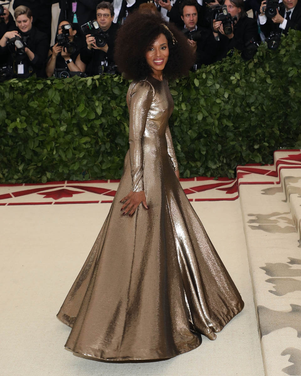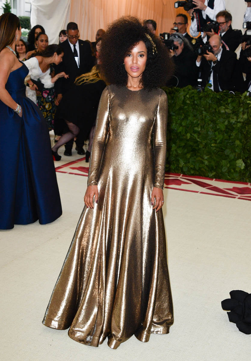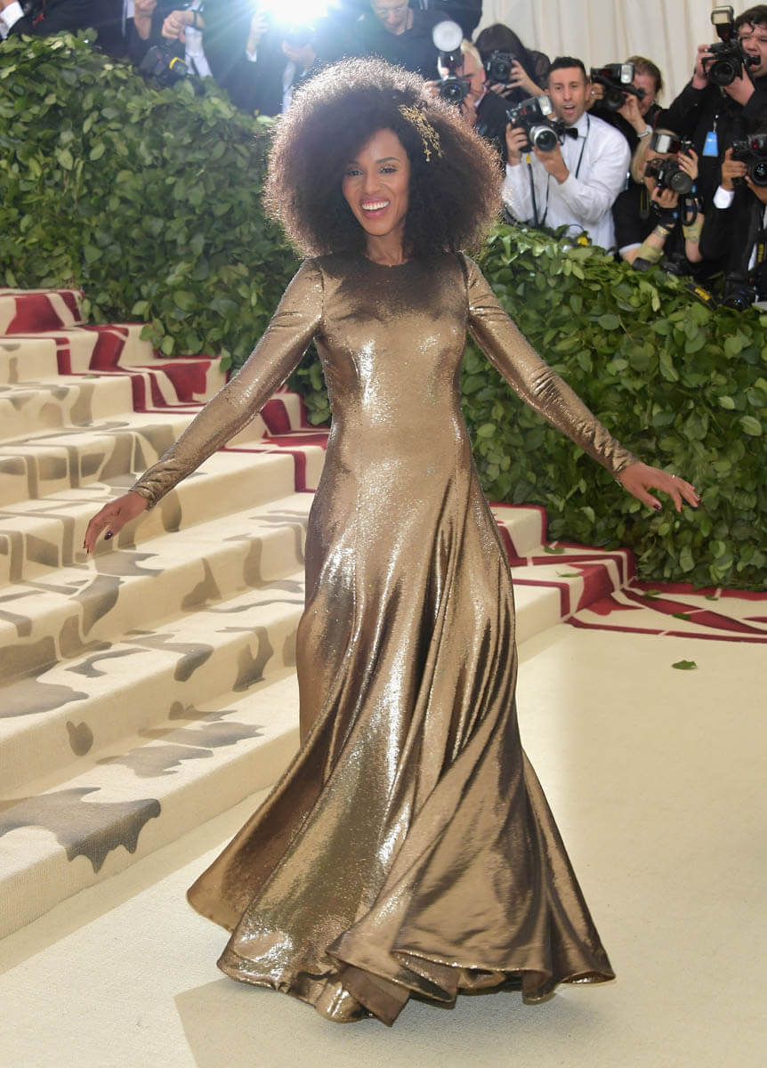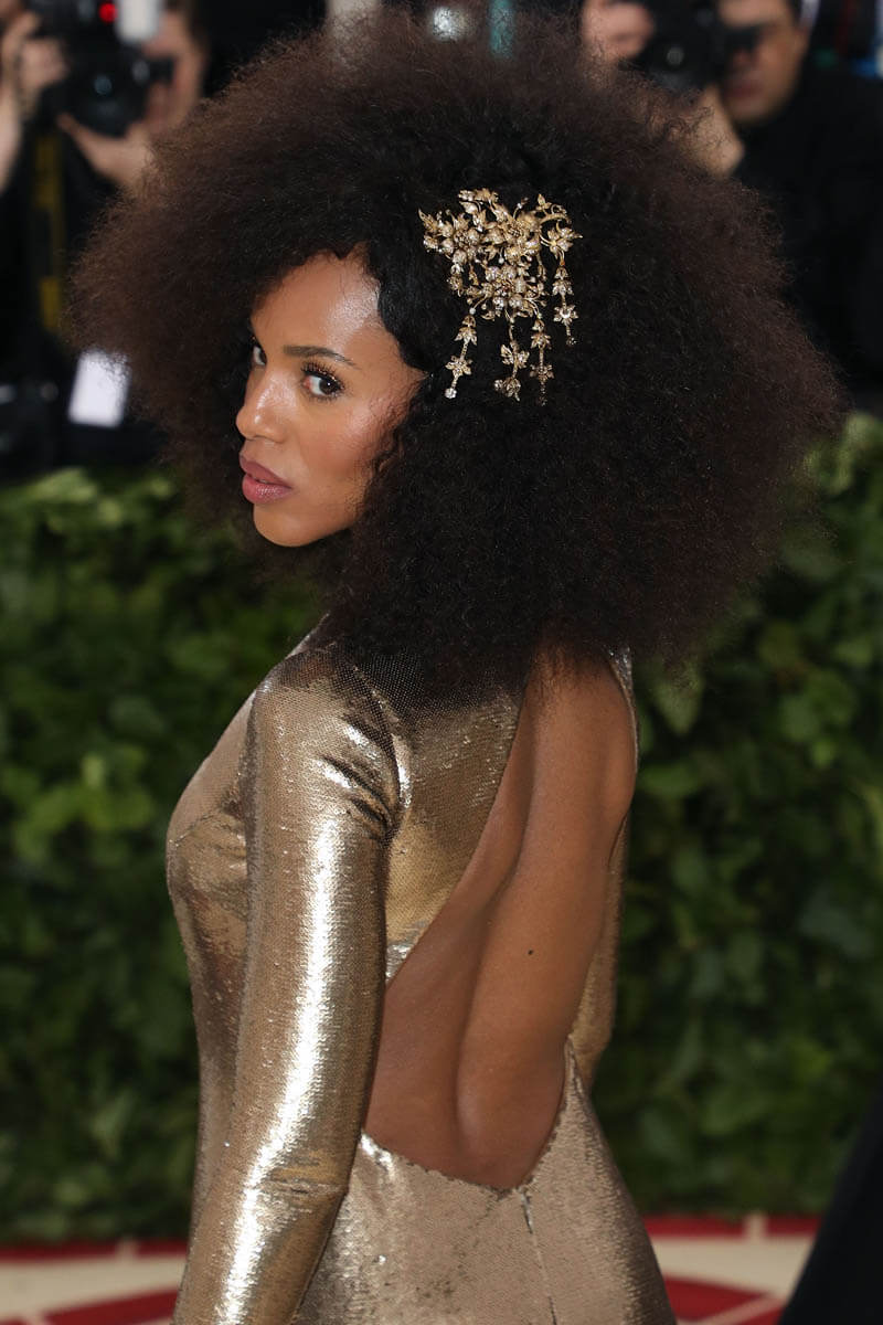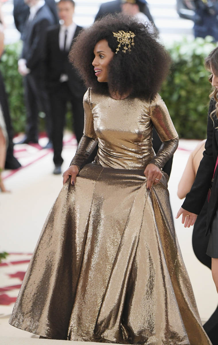 This was also one of the most hair-creative Met Galas we’ve had in years. It was definitely the headpiece effect. Tousled waves just aren’t going to cut it when you’re putting on a tiara and going Baroque so hairstylists were given that much more to work with. Kerry Washington and Uma Thurman both went with volume but in two different ways.