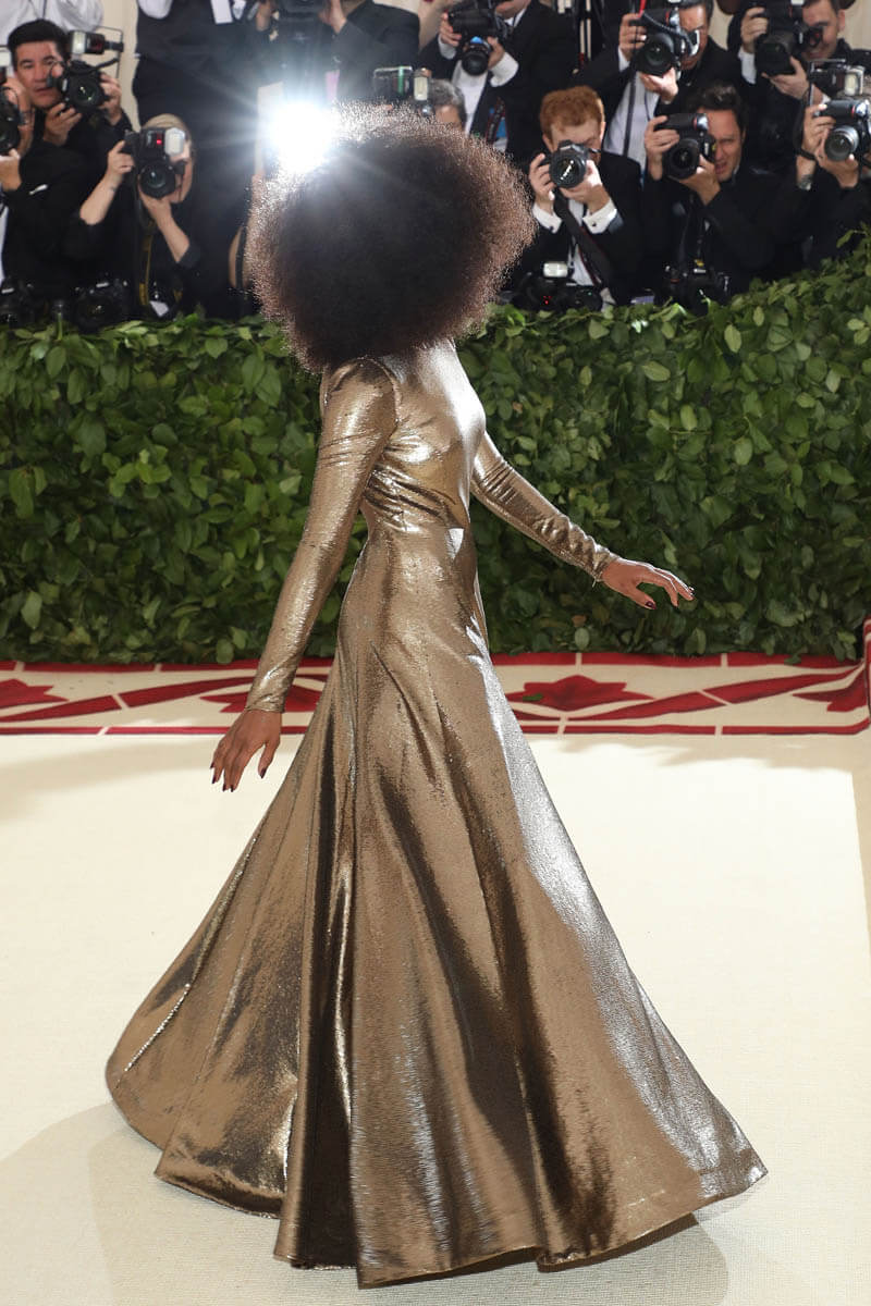 All night I kept trying to figure out why people seemed so much more comfortable this year at the Met Gala. Is it just me? Didn’t they all look and seem that much more comfortable? My theory is that because of the theme, they were, ironically perhaps, liberated from having to do the sheer and lace and skin thing. Is that the advantage of a higher neckline? It’s definitely one of the reasons I avoid body-con. Worrying about a wardrobe malfunction is stressful.