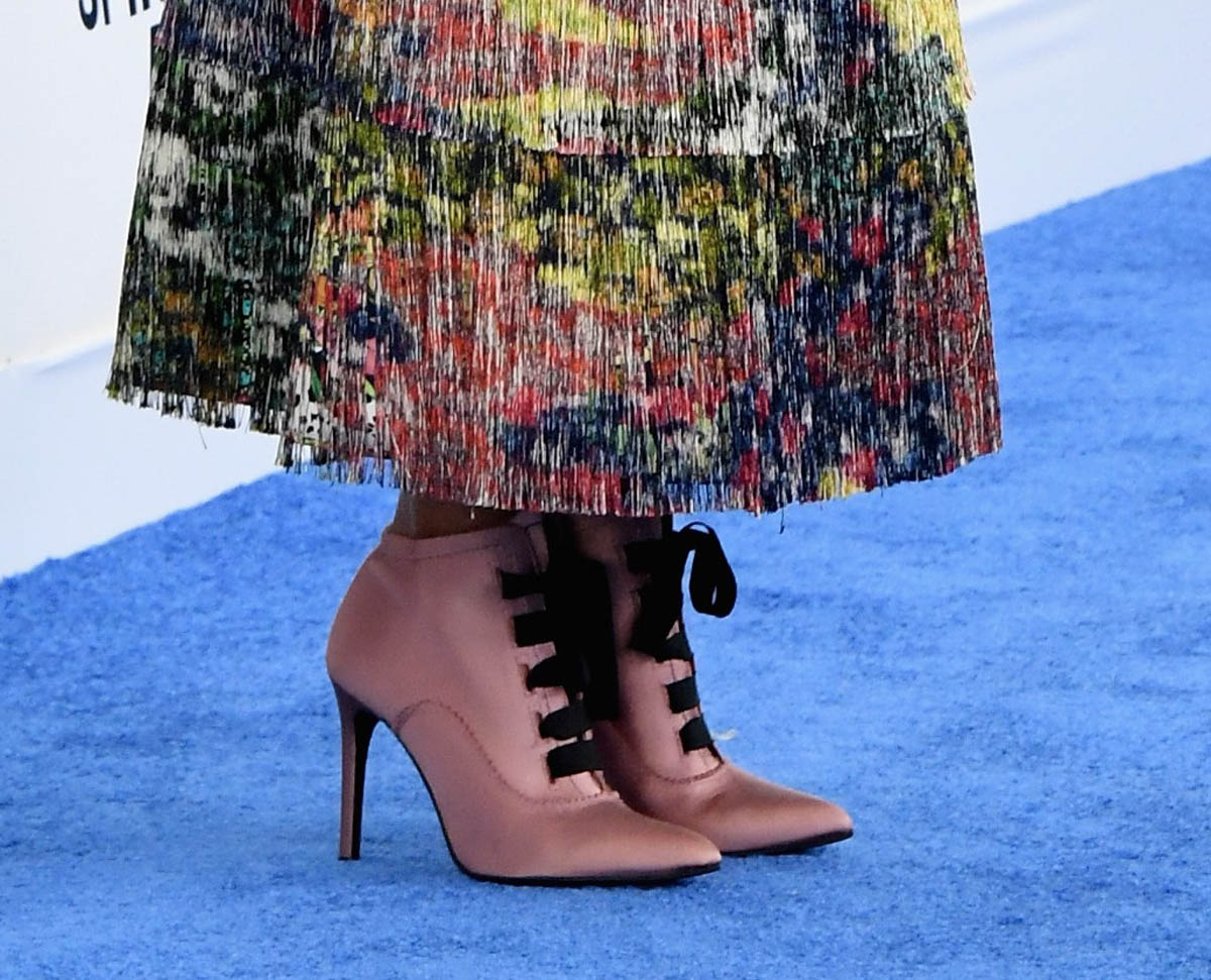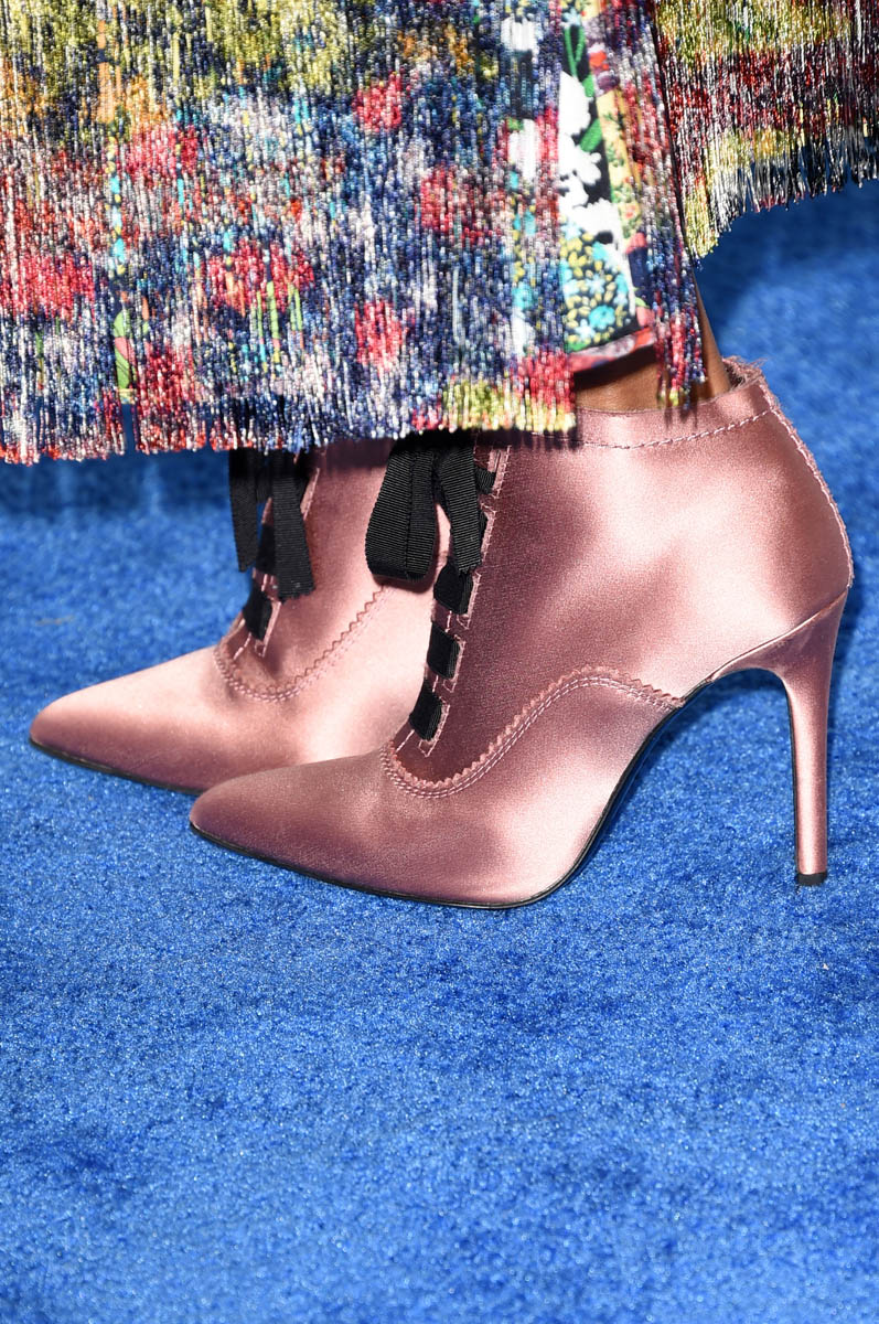 Even with the booties. These booties! Pink satin. And with a dress like this - it's a GREAT choice. Because I feel like most people would have gone with a strappy sandal. Boring. The bootie makes it. These booties would make ANYYYYY outfit, actually.