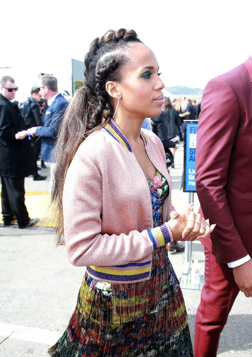Kerry Washington's dress, with all those colours blending together, an impressionist painting, shimmering by the beach. (The Spirit Awards happen at the beach.) Elevated beach, obviously. But there's still something breezy about this look, don't you think?