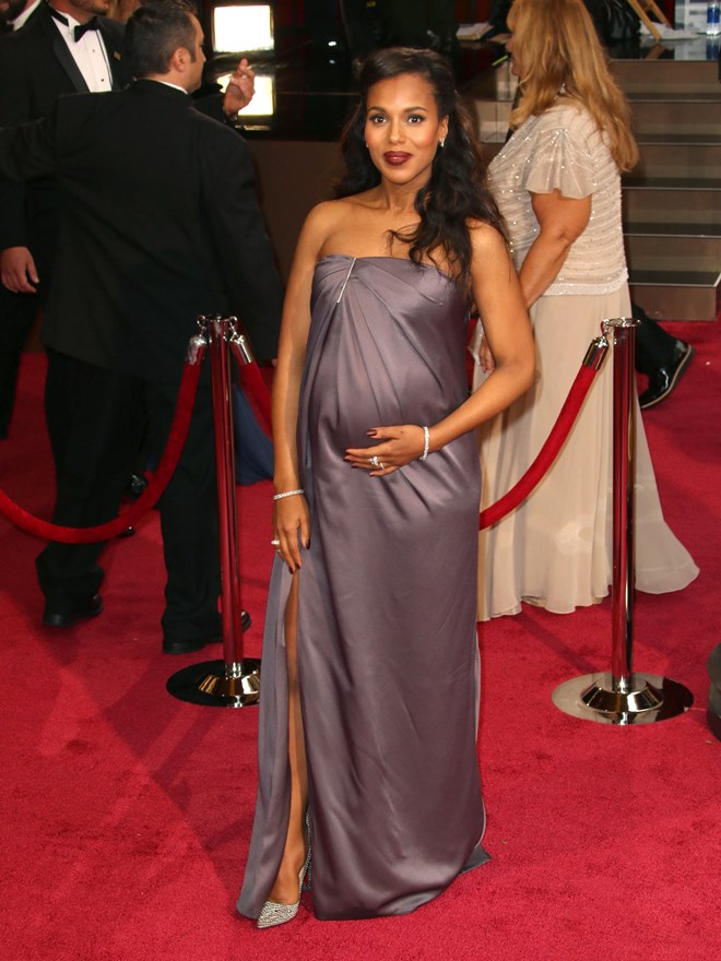 I feel as though Kerry Washington took this advice on the one and only night when she shouldn’t, and I can’t fault her for it because I’m the one that recommended it. But the fact is, even though her hair and makeup were luscious and beautiful and selling a whole bunch of unsuspecting fans on how great it is to be pregnant*, her slightly unmemorable dress wound up looking kind of “greige” and definitely wrinkled. Which is no big deal unto itself, but it lent her the air of maybe being less on top of things than Olivia Pope always is.