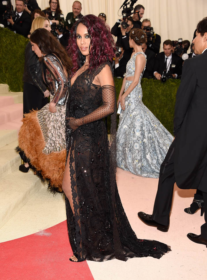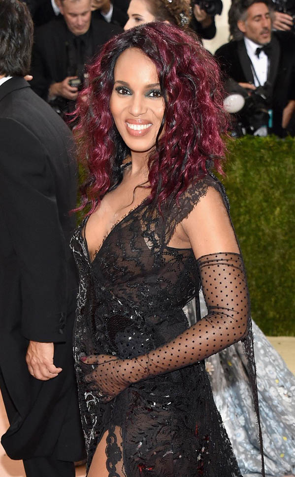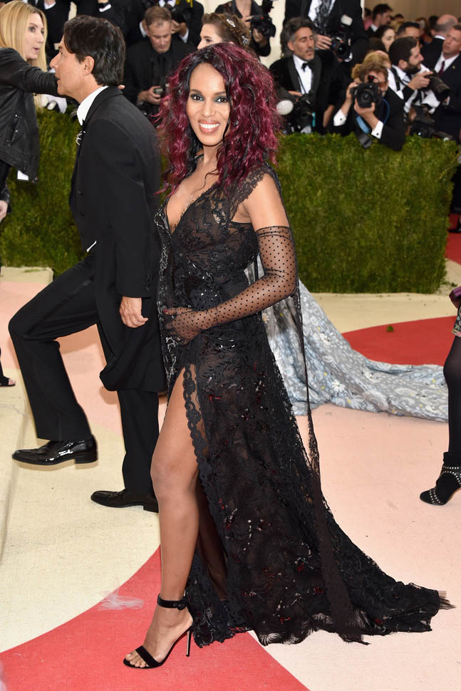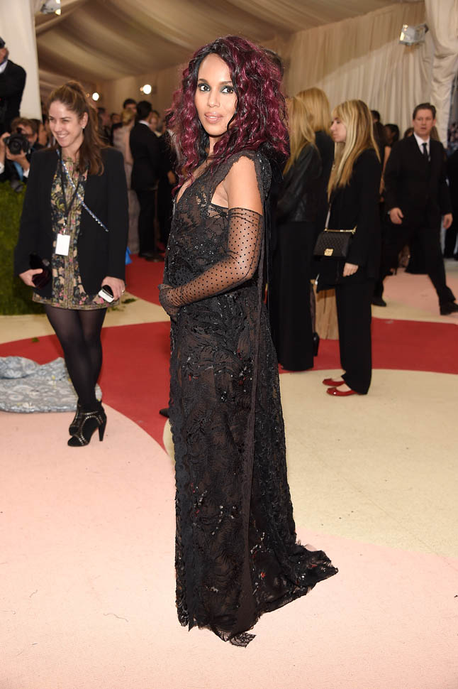 OK. I think what’s happening here is that she wanted to try something different. Because this is like nothing we’ve ever seen her wear before. She’s worn Marc Jacobs before but, well, not with this hair. Not with this mood. This kinda lounge singer seductress thing she’s working. I mean, it’s the Costume Institute Gala. And I suppose, if you want to put on an alternate personality, if you want to wear an alternate style, this would be the night to do it. Kerry at the MET is so not Olivia Pope.