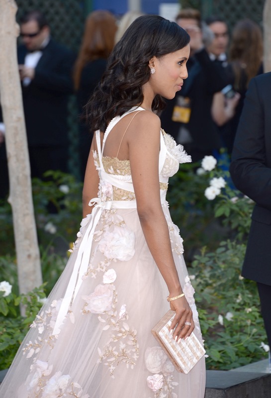 I don’t want to talk about Kerry Washington, our beloved Kerry Washington, in those terms. I don’t want to talk about her in sh-t vs diarrhoea terms. So what are we doing here, in this wedding dress, described by ass-kissy sites like PEOPLE etc as “romantic” and “ethereal”? It’s just so…derivative, isn’t it? Let’s make it an angel’s dress! Angels and flower buds go together! And a heaving fertile bust! Conspiracy! She’s pregnant with Fitz’s baby! I will leave it to you to bumpwatch that situation.
