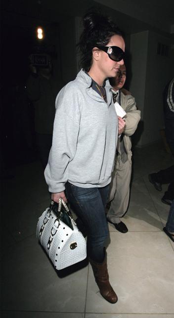 Here’s Britney and her nasty ass nails on a ciggie run last night before checking in to yet another hotel. Perhaps the Four Seasons realised their good name was being soiled?