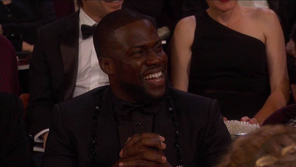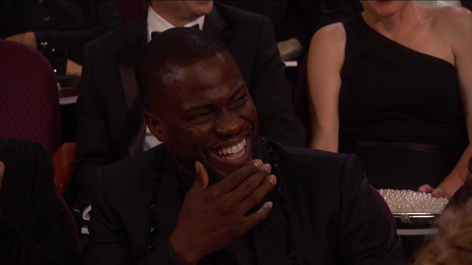 But at the top of his game, Kevin Hart is having a blast. Which means he shows up to the Oscars in a jewel-encrusted tux and adheres to the Taha Principle of Awards Shows—if you agree to show up, you better agree to have a good time, to the best of your abilities. Stuff happens, but don’t be put-upon and pouty, you came! You accepted an invitation to a party!