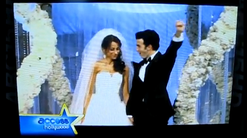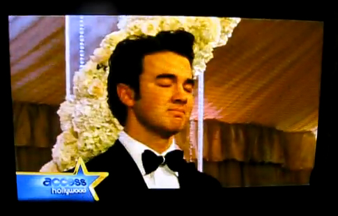 But I’ve watched this 3 times. And since Kevin Jonas chose to provide his wedding video (totally free, right?) to Access Hollywood, this sh-t is fair game. Especially when it’s such a wonderful gift. Right off the top, note the fist pump. My friend Scott said it’s more like a Cheerleader Pump. He may as well be holding a pompom. With sequins. What?
