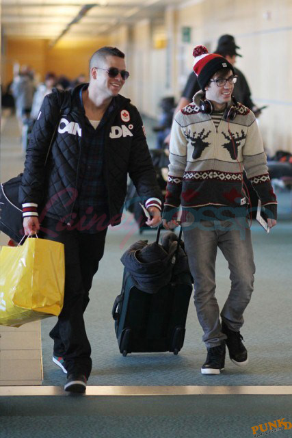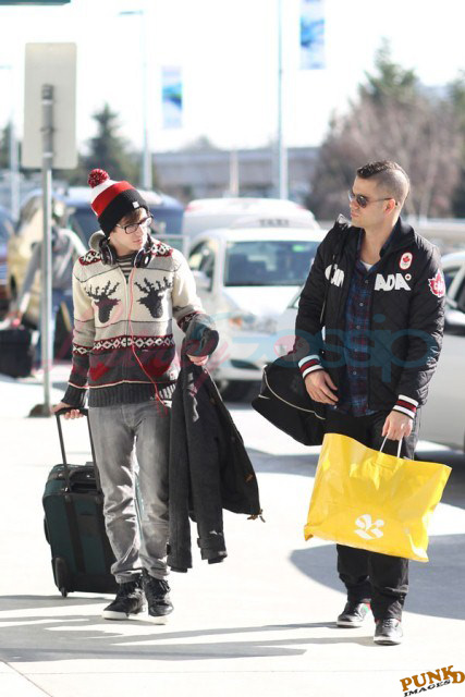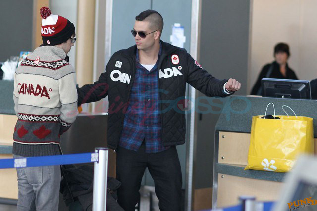 Here they are kitted out in their HBC gear after a trip to the gifting suite, flying back to LA wearing Canadian.