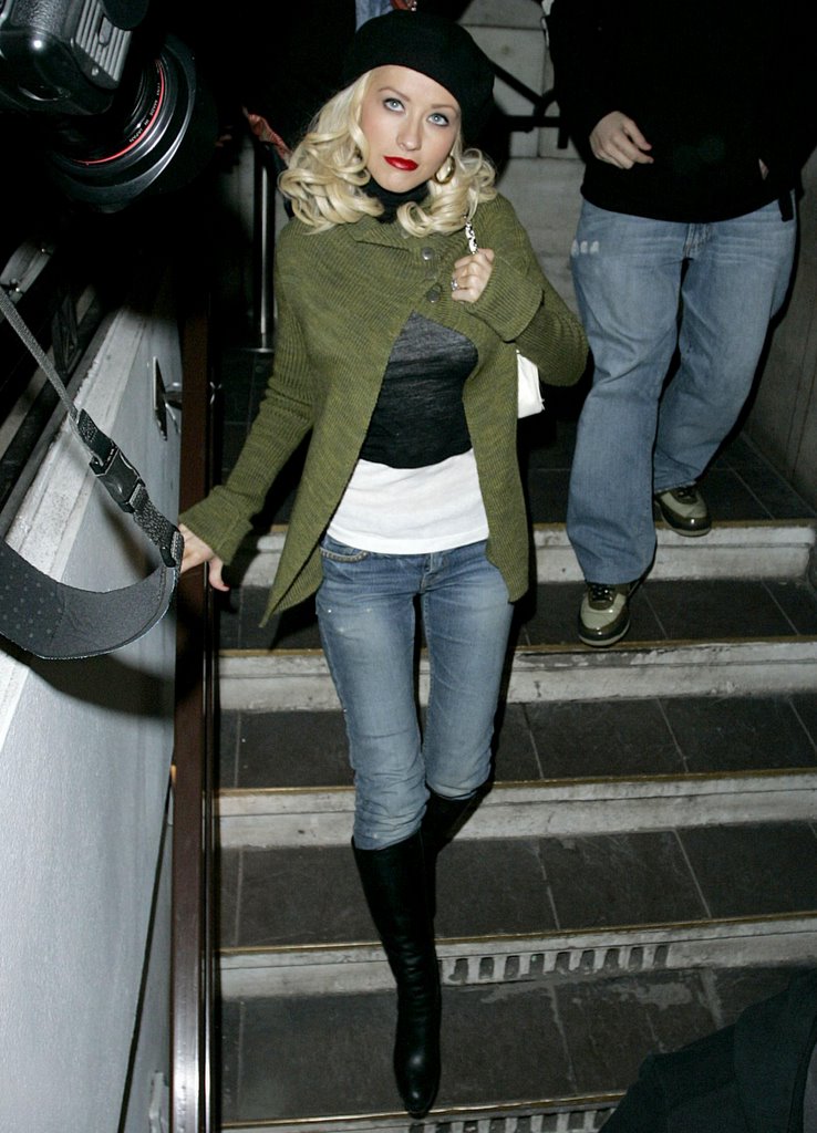 Though I shudder to think of what she looks like sans maquillage, I do like the married Aguilera (from JustJared). I like her style, I like her body, I even like her wig. Yeah sure, I’ll admit it borders on possessed porcelain doll and it would be nice to see what a tan would do for the poor girl but at the very least she’s not wearing chaps. And between her and the Federline infected Britney, my vote goes Xtina all the way. Anyway, Mrs Bratman is in Paris, beginning promo for her next cd release, a collection of songs inspired the old school way from the 20s and 30s and a nice departure from the bubble gum horny skank pop that defined her previous efforts. It’s a smart move for someone who aspires to a long career and who clearly has some talent. Evolution is never a bad thing and it’s not hard to want the best for someone who seems to be trying to pull her sh*t together, unlike other Mickey Mousers who know and love.