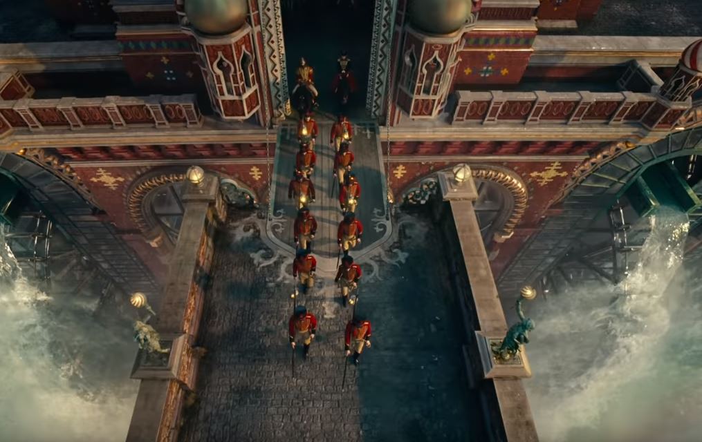 Four Realms contains the usual Nutcracker elements of a girl, Clara (Mackenzie Foy), and a magical Christmas Eve spent frolicking with toys come to life. This Clara, though, is STEM-inclined and helps her godfather, Drosselmeyer (Morgan Freeman, cashing a check), with his elaborate clockworks. It’s Drosselmeyer who sends Clara into the Four Realms, and there Clara discovers the Nutcracker (Jayden Fowora-Knight) and the regents of the Four Realms: Shiver (Richard E. Grant, shamefully wasted), Hawthorne (Eugenio Derbez), Sugar Plum (Keira Knightley), and mad Mother Ginger (Helen Mirren). The Four Realms are very Narnian, and Clara walks into being a princess because her mother was the queen of the Four Realms. But now her mother is dead and Mother Ginger has gone mad and is trying to take over the other three realms. They use the word “realms” SO MUCH in this movie.