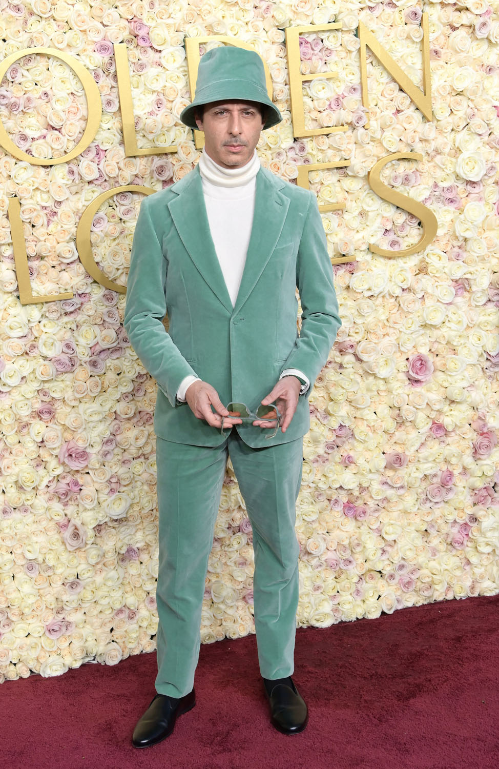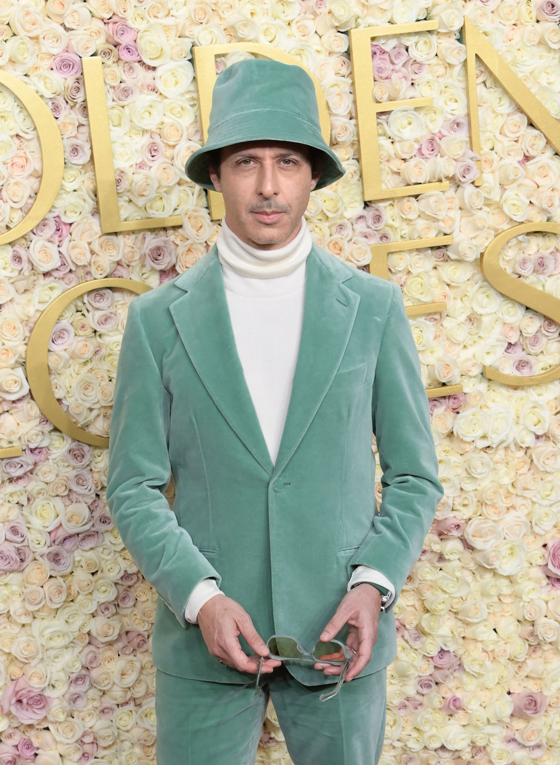 Let’s just say it. It needs to be said. We’re all thinking it—Jeremy Strong showed up to the Golden Globes dressed like a Lucky Charm in a 90s rap video. He looks like his boy Squiggle is cooking up beats for him back home.
