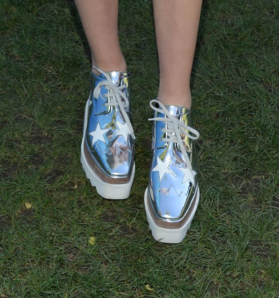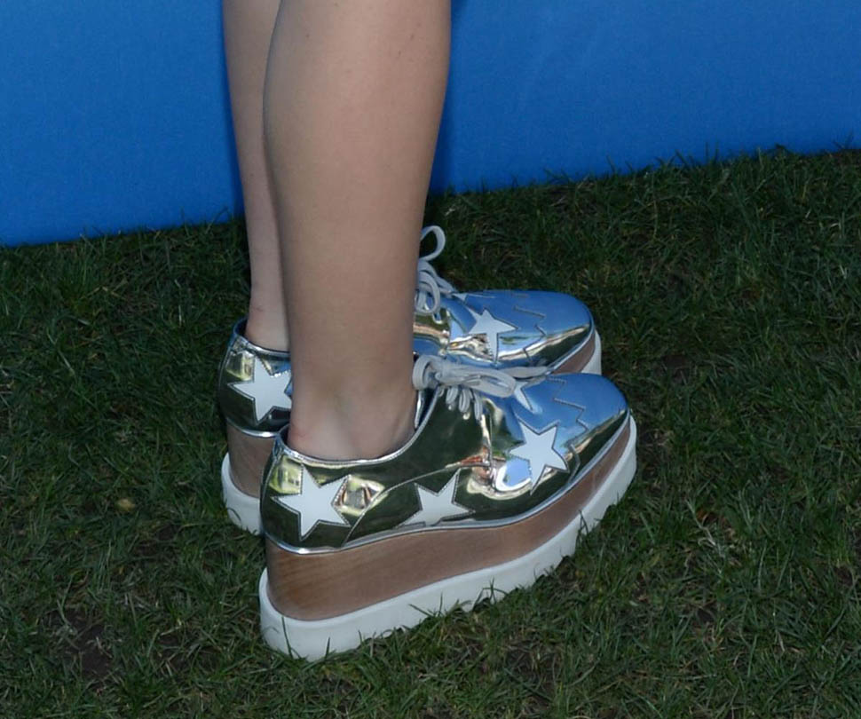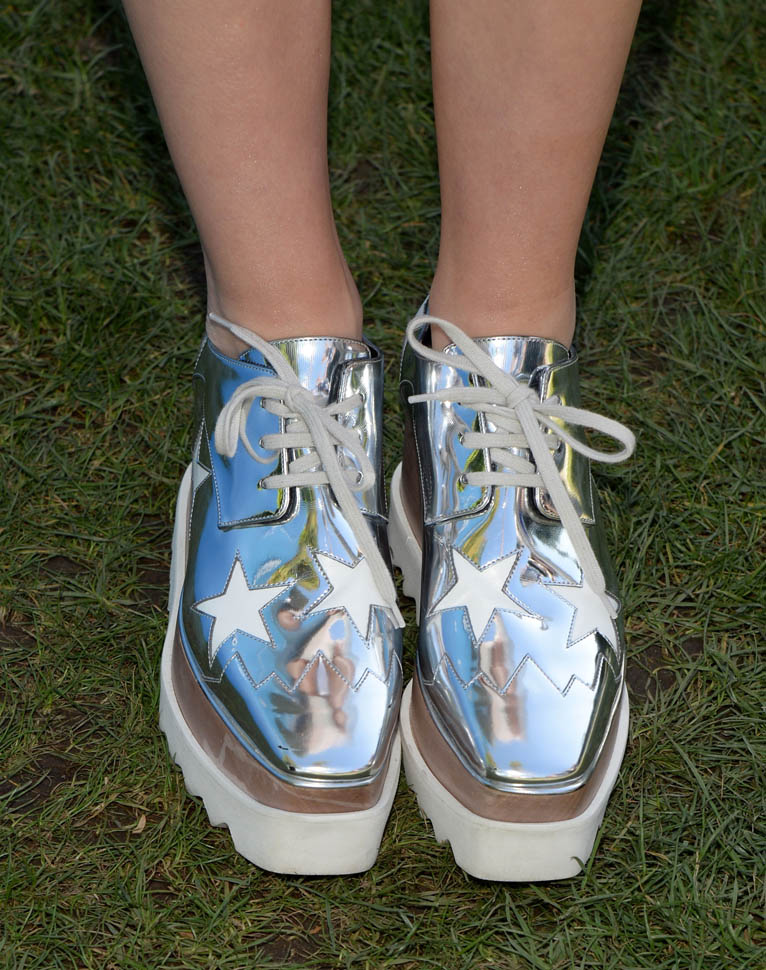 She did not dress like an asshole at Coachella. For two outfits, she wore the Stella McCartney silver platform oxfords. I’ve tried them on. And on me they felt like they were overpowering me. On Kiernan Shipka they’re perfect. Anyway, if you’re looking for a pair, Zara’s doing a pair this season – click here - and for the high end option, I went with the Pradas. The height felt more comfortable to me: