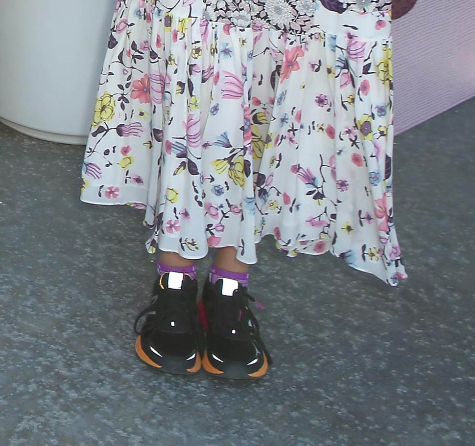 And then she changed up her shoe game for a floral dress – proper sneakers and ankle socks. And I love this too. It’s no style style.