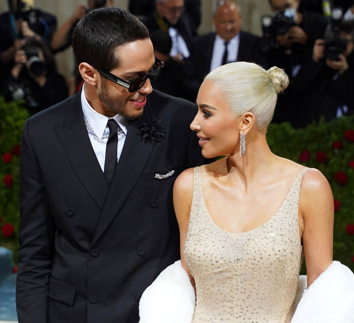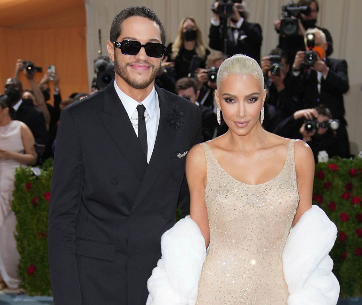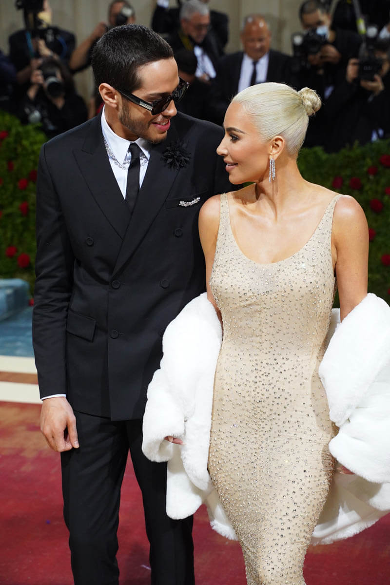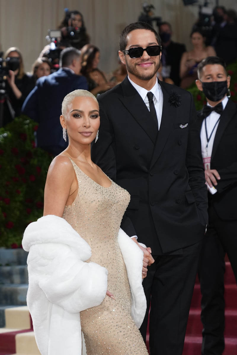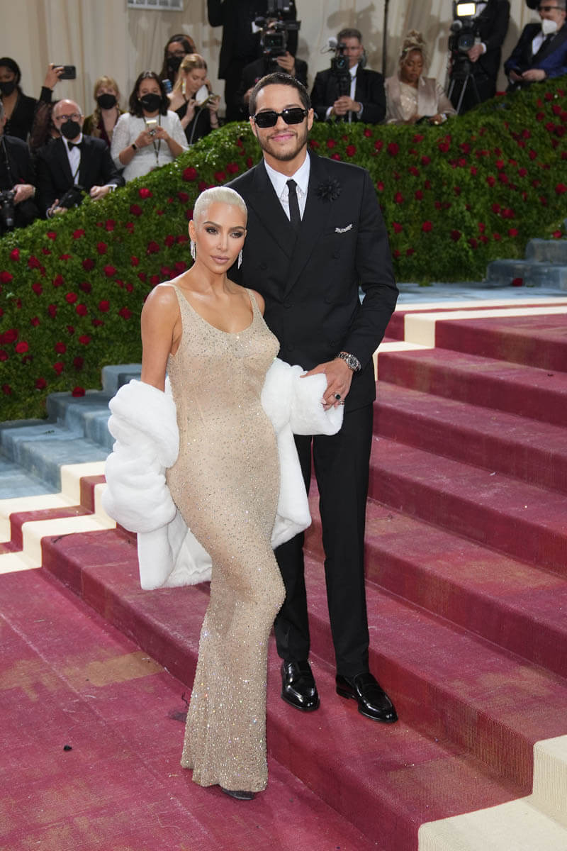 Kim was accompanied by Pete Davidson for her Marilyn Moment. It wasn’t their official red carpet debut, since they couple attended the White House correspondents dinner together over the weekend. But it’s still odd watching them. There’s chemistry on display, but my mind won’t let it compute. During the Vogue livestream, Pete stood aside while Kim did her thing but then Lala Anthony called Pete over, he made a bad joke and then retreated while Lala and Kim died laughing… I guess you had to be there? Then Kim and Lala gushed over how good he looked. That was my cue for a bathroom break.