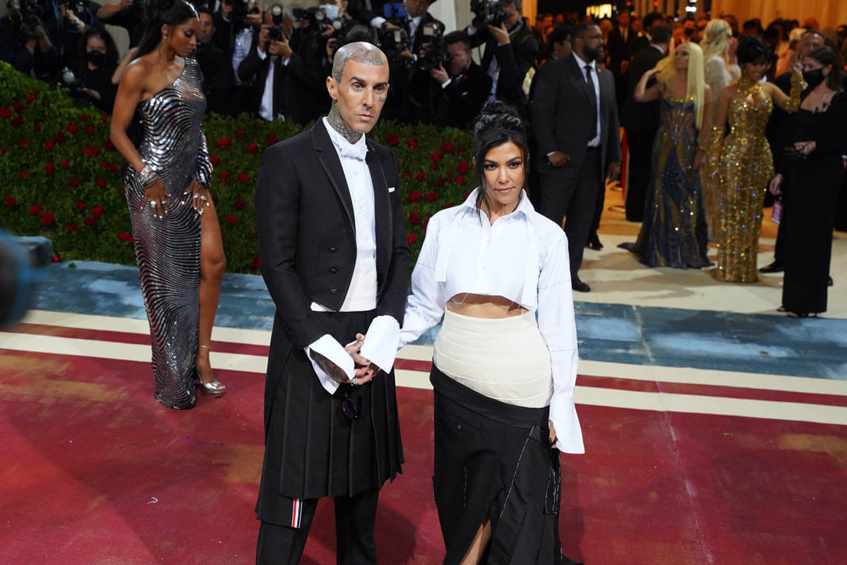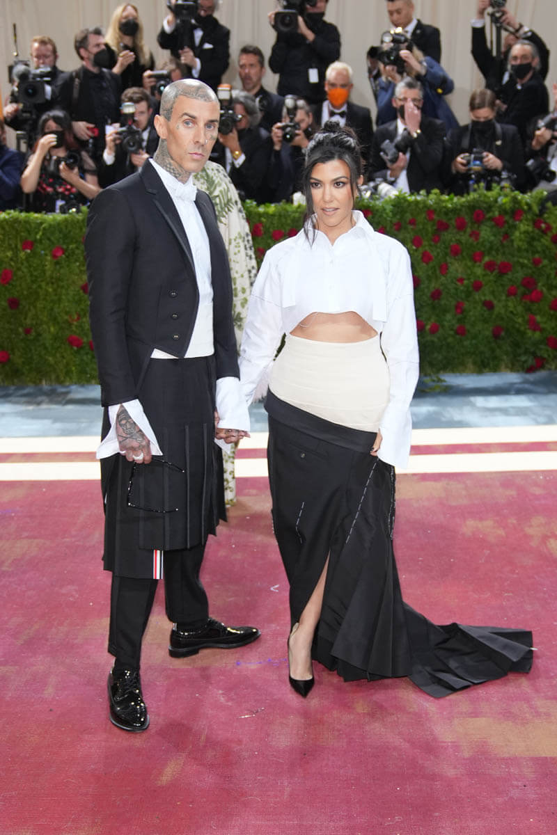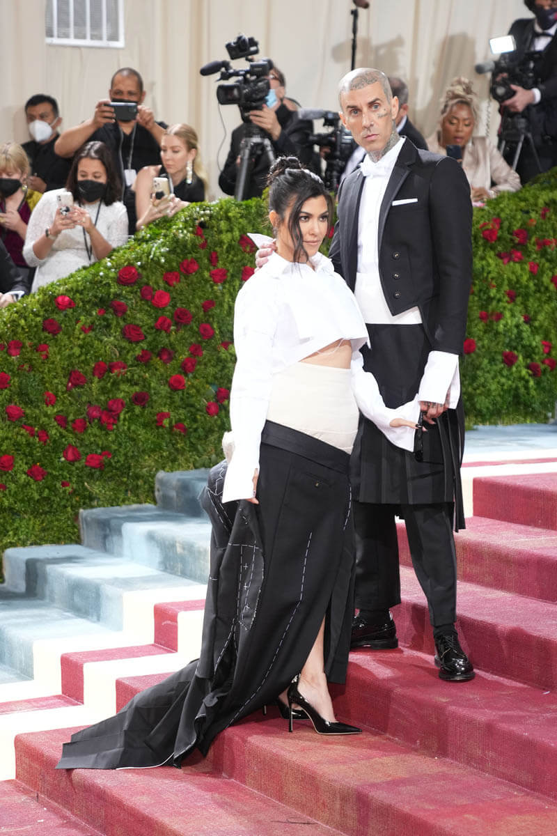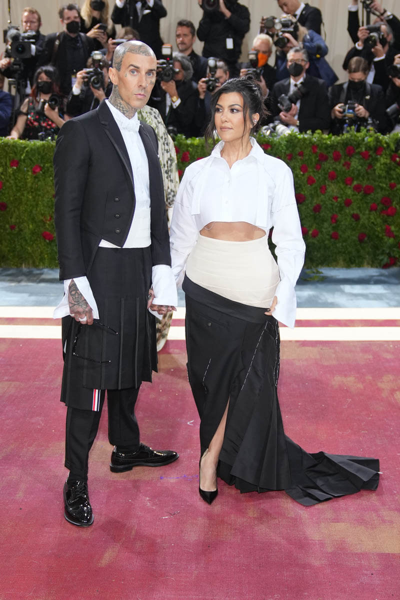 Kourtney and Travis arrived together, because (if you’ve been watching The Kardashians on Disney+) they’re inseparable. Kourt’s look was odd. It’s a deconstructed tuxedo of sorts but it actually just feels like a work in progress. The crop top is great, though.