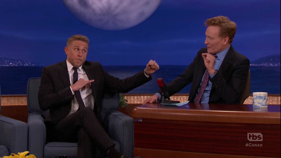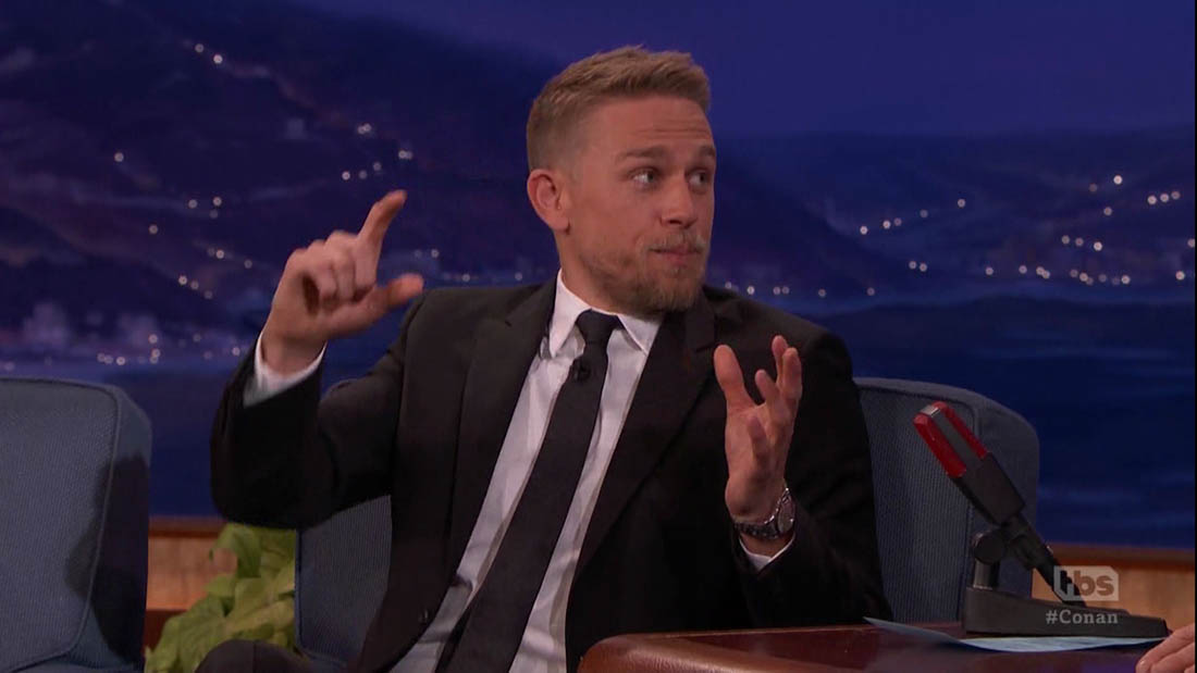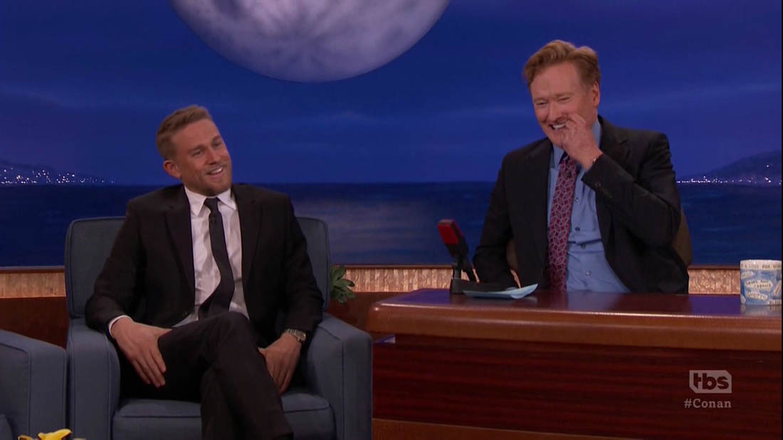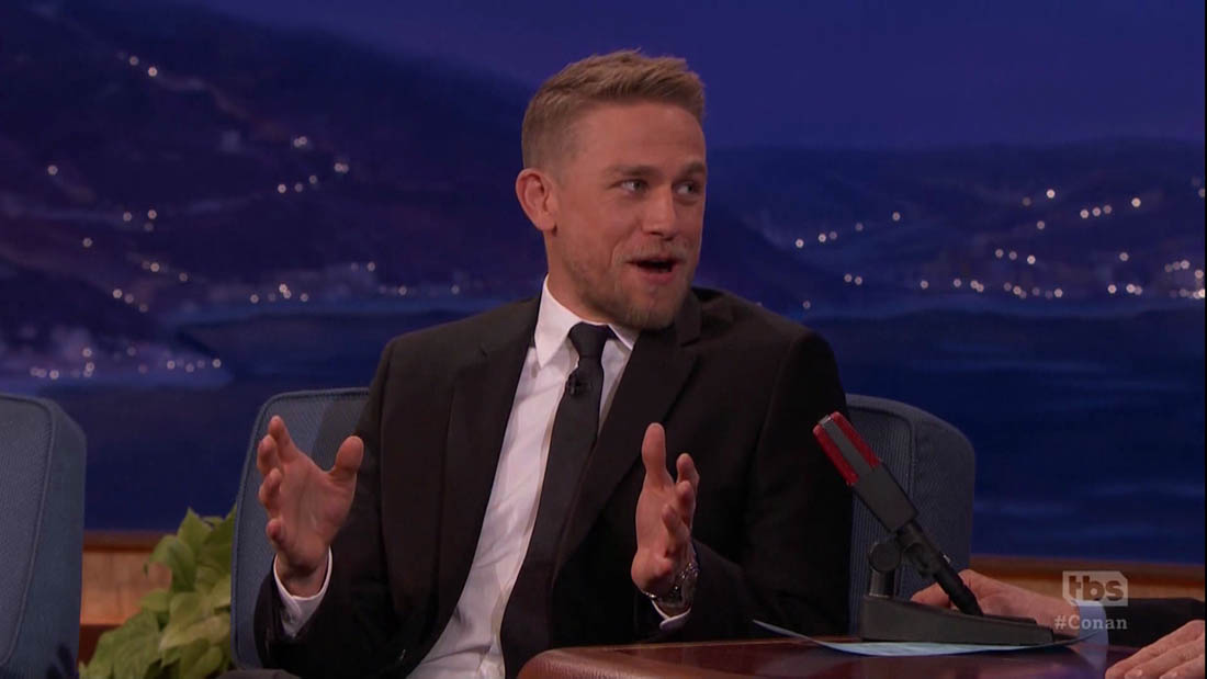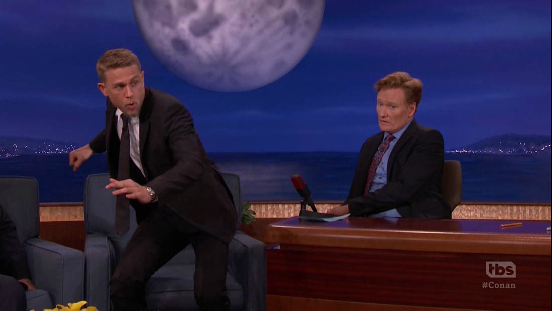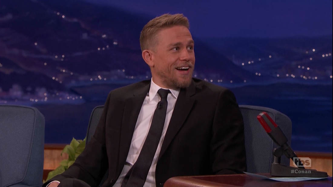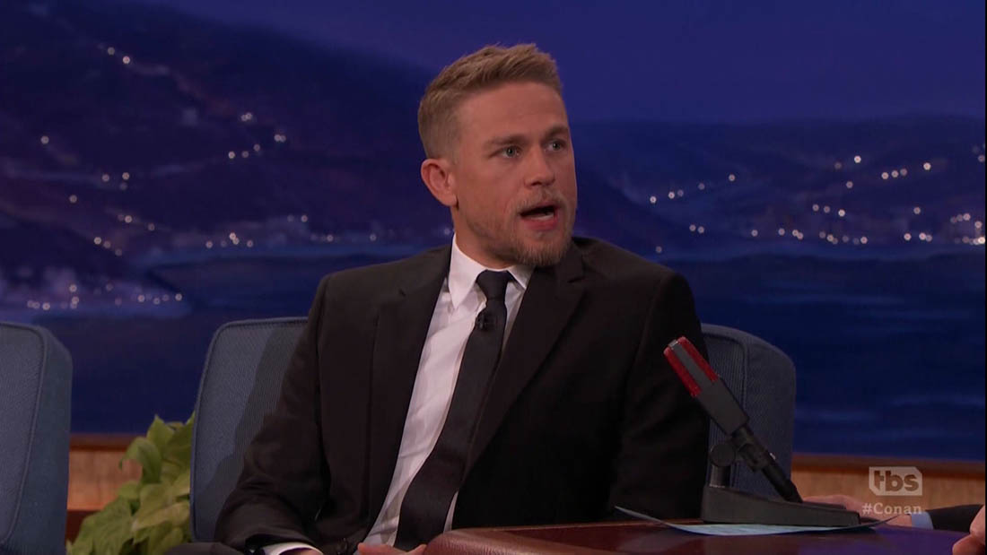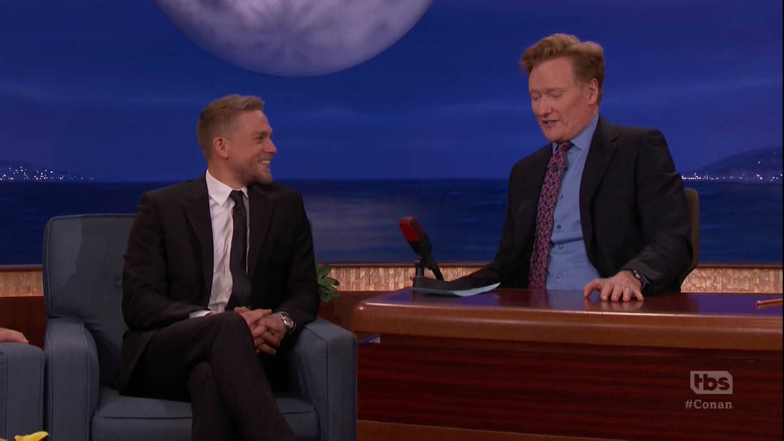 Attached - Charlie Hunnam promoting King Arthur on Conan last week.