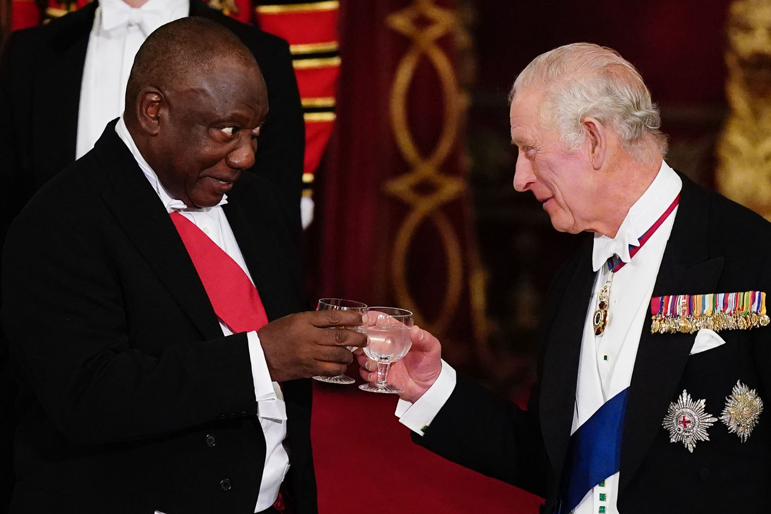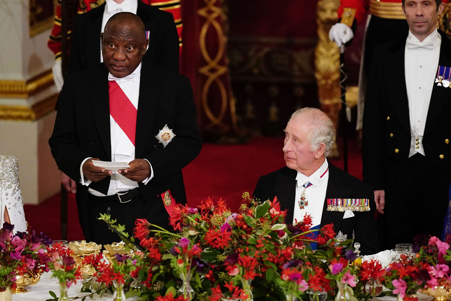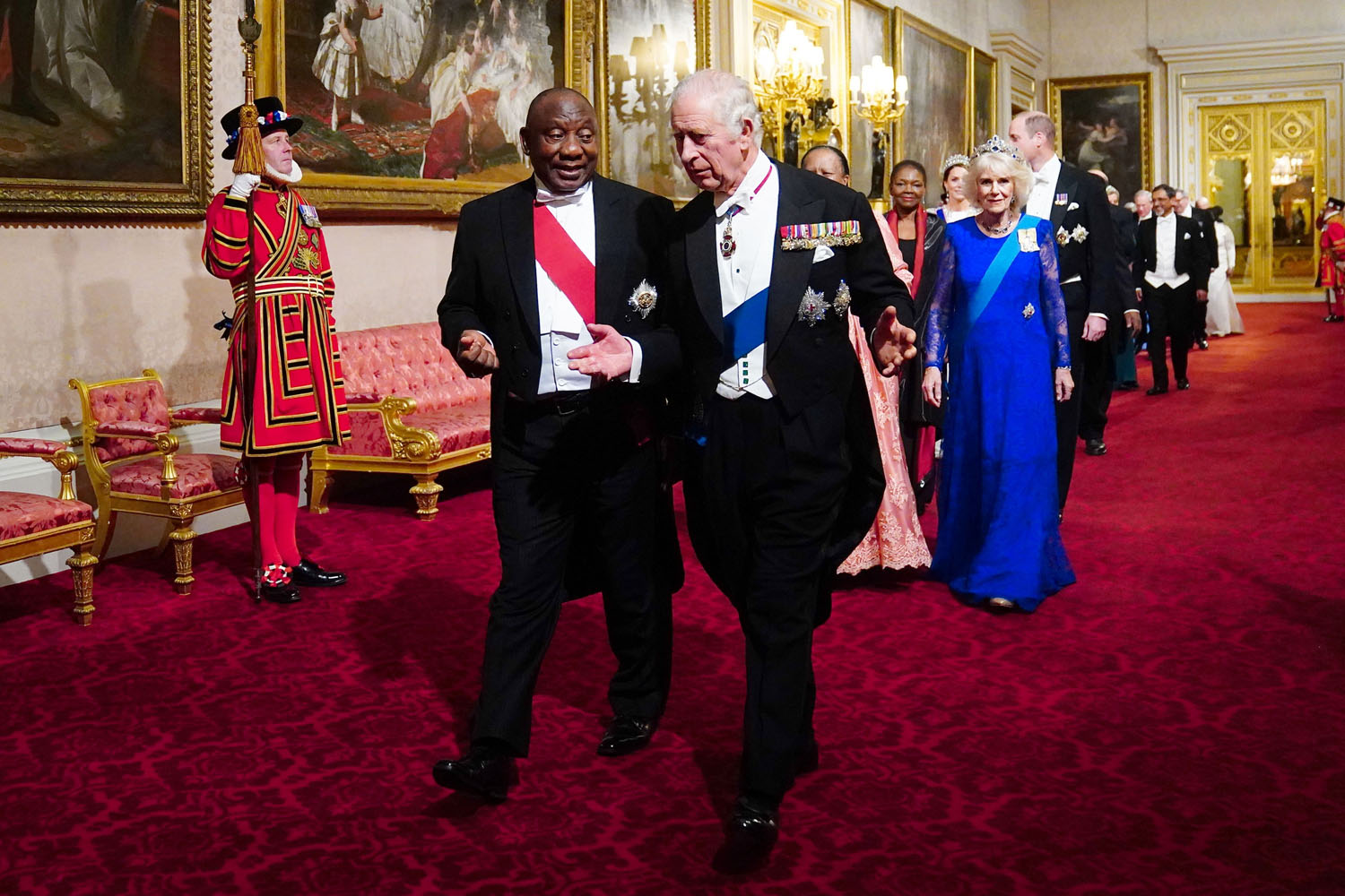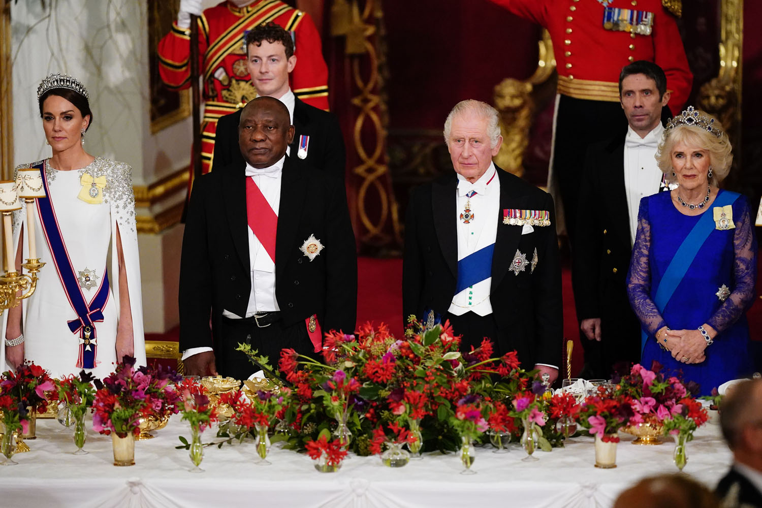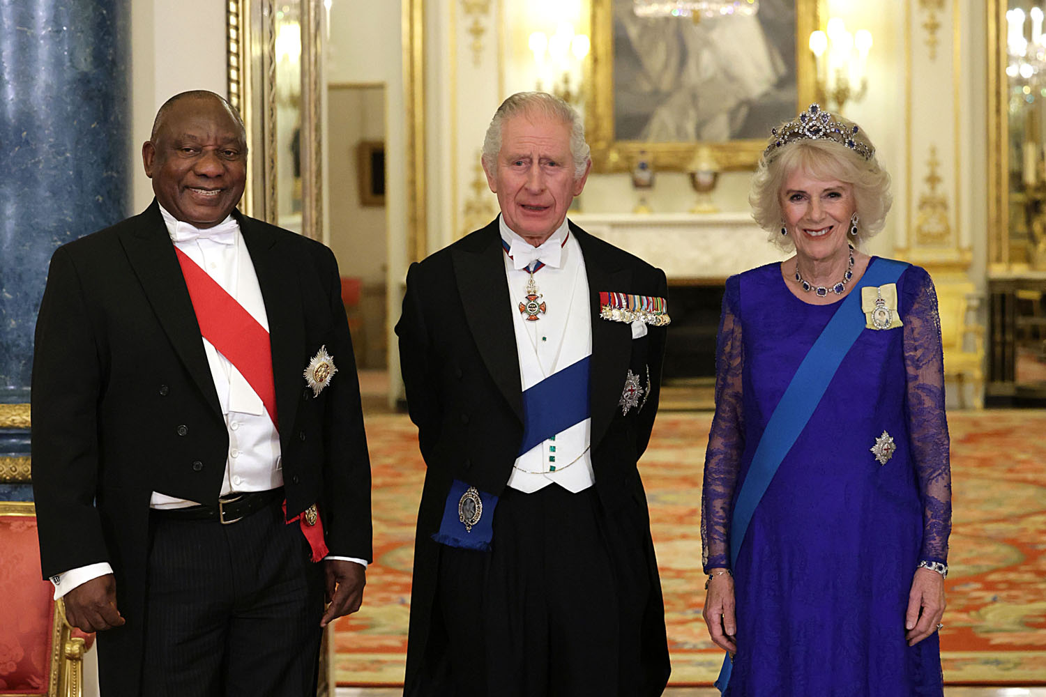 King Charles hosted his first state dinner since ascending the throne yesterday as he and members of the British royal family welcomed Cyril Ramaphosa, the President of South Africa, to the United Kingdom. And it was Camilla’s first occasion to wear a tiara since becoming Queen Consort. She chose the Belgian Sapphire Tiara, which belonged to the late Queen Elizabeth, along with the matching necklace and bracelet for a full blue monochrome look.