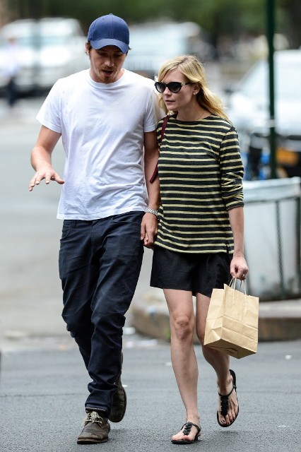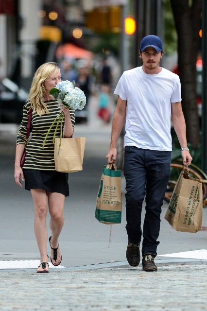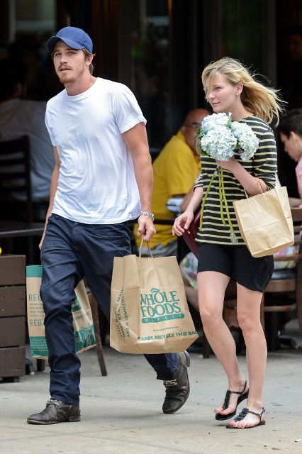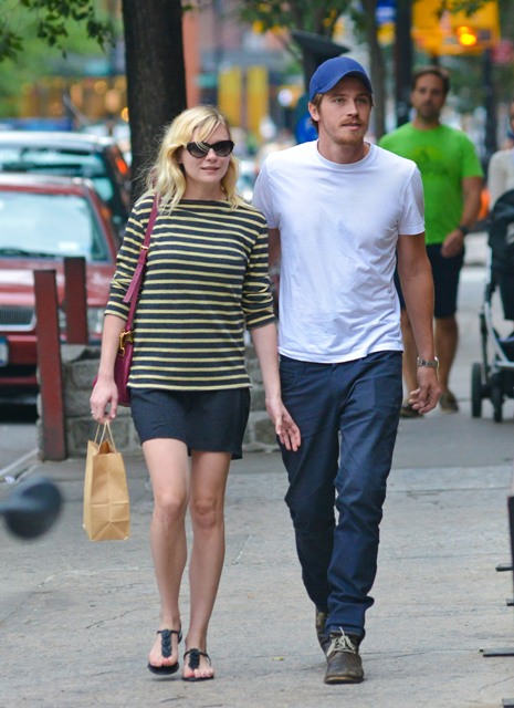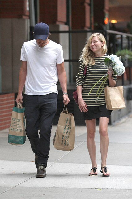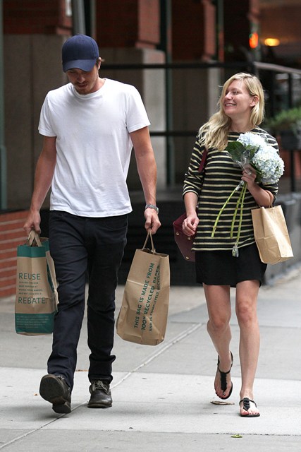 Here are Kirsten Dunst and Garrett Hedlund in New York yesterday holding hands on the way to the market. It’s sunny. She bought flowers and they walked home with their grocery bags and it’s one of those postcardy movie montage moments you imagine with Dragonette lightly playing in the background. Or maybe it’s more appropriate for the first day of school, getting ready, putting on the outfit you’ve been planning for a week, when everything is still new and no one hates you yet. Let me DJ this for you.