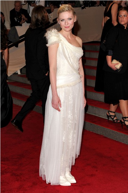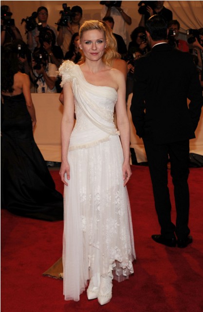 Kirsten Dunst is wearing Rodarte for Gap. Compared to Emma Watson, as far as a one shoulder goes, Kiki’s is so much more interesting, especially the back. Quirky but still elegant, with personality, and totally suited to the night particularly paired with those gran boots. Perfect touch. And it’s the best Kiki’s looked in a long time. Perhaps this year’s Vanity Fair Hollywood Issue, with the new crop of young women, was a little bit of a jolt. After all, Kiki is just 28. They’re all still contemporaries. And she used to be It. So now it’s time to get it back. Good.