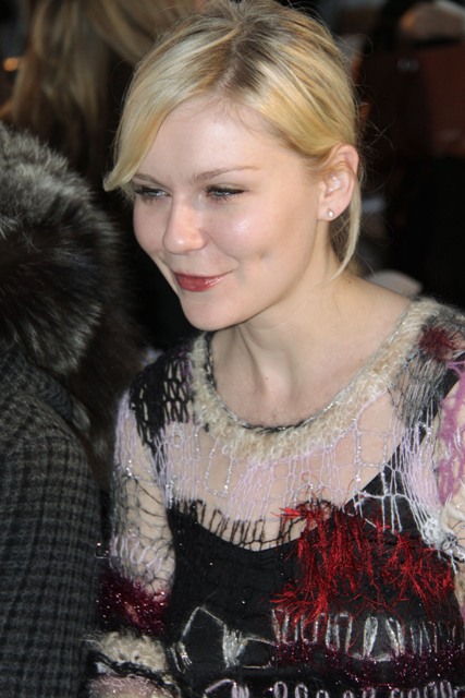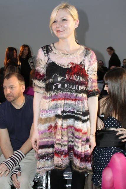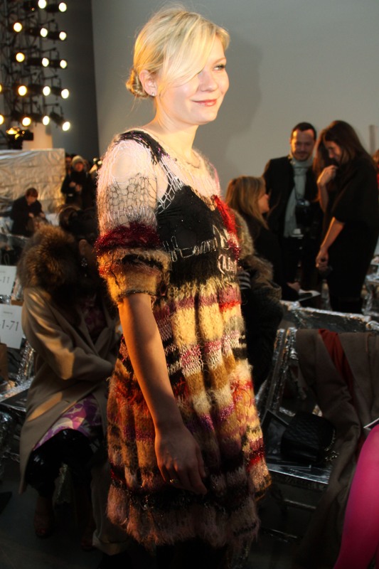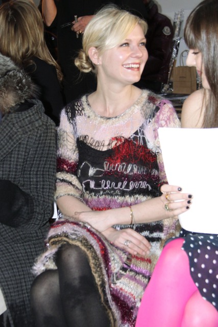 Kirsten Dunst at the Rodarte show today. Kiki has been quite selective about what she’s attending – unlike Mischa Barton she’s not a front row whore.